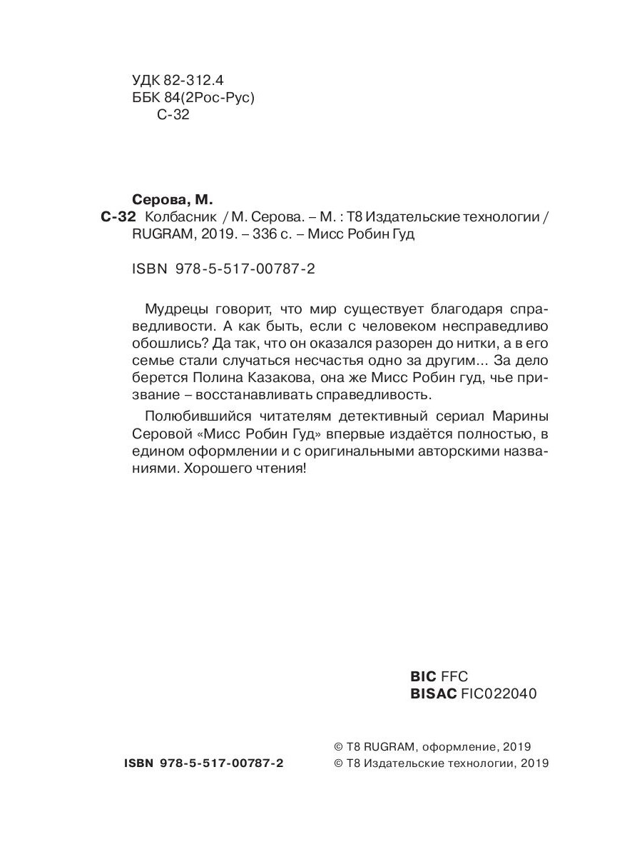 Полюбившийся читателям детективный сериал Марины Серовой «Мисс Робин Гуд» впервые издаётся полностью, в едином оформлении и с оригинальными авторскими названиями. Хорошего чтения!
