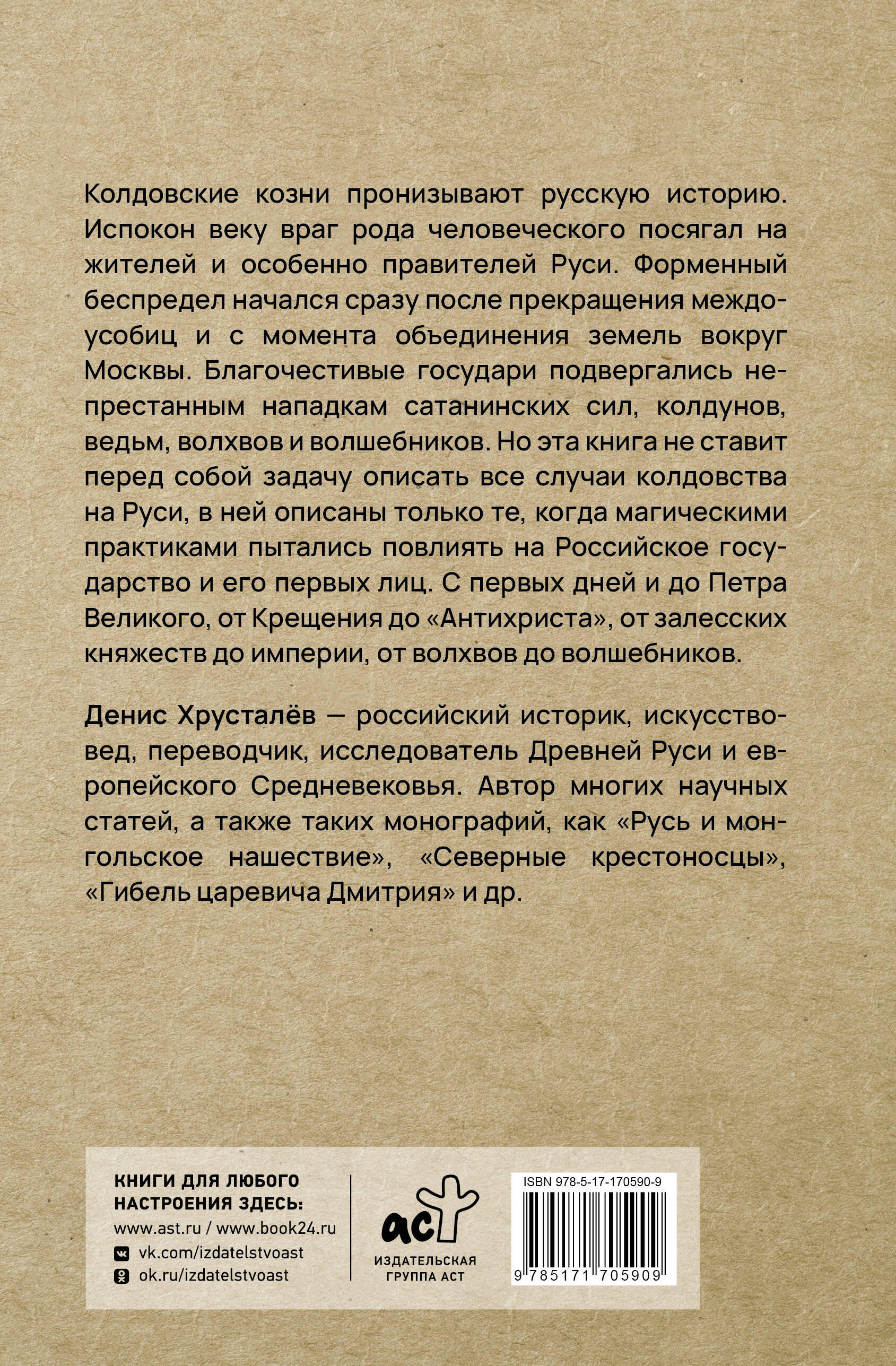Колдовские козни пронизывают русскую историю. Испокон веку враг рода человеческого посягал на жителей и особенно правителей Руси. Форменный беспредел начался сразу после прекращения междоусобиц и с момента объединения земель вокруг Москвы. Благочестивые государи подвергались непрестанным нападкам сатанинских сил, колдунов, ведьм, волхвов и волшебников. Но эта книга не ставит перед собой задачу описать все случаи колдовства на Руси, в ней описаны только те, когда магическими практиками пытались повлиять на Российское государство и его первых лиц. С первых дней и до Петра Великого, от Крещения до "Антихриста", от залесских княжеств до империи, от волхвов до волшебников. Денис Хрусталёв - российский историк, искусствовед, переводчик, исследователь Древней Руси и европейского Средневековья. Автор многих научных статей, а также таких монографий, как "Русь и монгольское нашествие", "Северные крестоносцы", "Гибель царевича Дмитрия"" и др.| Издательство | Издательство "АСТ" |