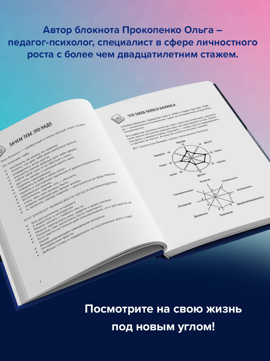 Быть в ресурсе и жить в балансе - самые популярные слоганы последних лет! За этими словами стоит мечта: везде успевать, не выгореть, уделять внимание и семье, и работе, и здоровью. Получить все, сразу, ничем не жертвуя. Думаете, это невозможно? Больше полувека назад эксперт по саморазвитию Пол Дж. Майер разработал уникальную технику "Колесо баланса". Многие курсы по тайм-менеджменту, техники и методики достижения успеха построены именно на "Колесе баланса" Майера. Эта эффективная методика легла в основу уникального ежедневника. Все необходимое собрано вместе - не надо искать и придумывать. Начать можно прямо сейчас - не нужно ждать понедельника! Вы получите: • Тест, который поможет понять, о каких важных сферах жизни вы забыли. Или не знали. • Таблицу для оценки своих усилий в разных сферах. А вдруг вы перерабатываете? • Инструкцию, как нарисовать и оценить свое колесо. Не надо быть Пикассо - все просто! • Советы по планированию недели и месяца. Займет не больше пяти минут в день. • Поддержку и мотивацию для того, чтобы расти и развиваться и не забросить это дело через три дня (точно не с нашим блокнотом). Посмотрите на свою жизнь под новым углом, подарите этот ежедневник друзьям, родным, детям. Универсальная методика подходит абсолютно всем.| Издательство | Издательство "АСТ" |