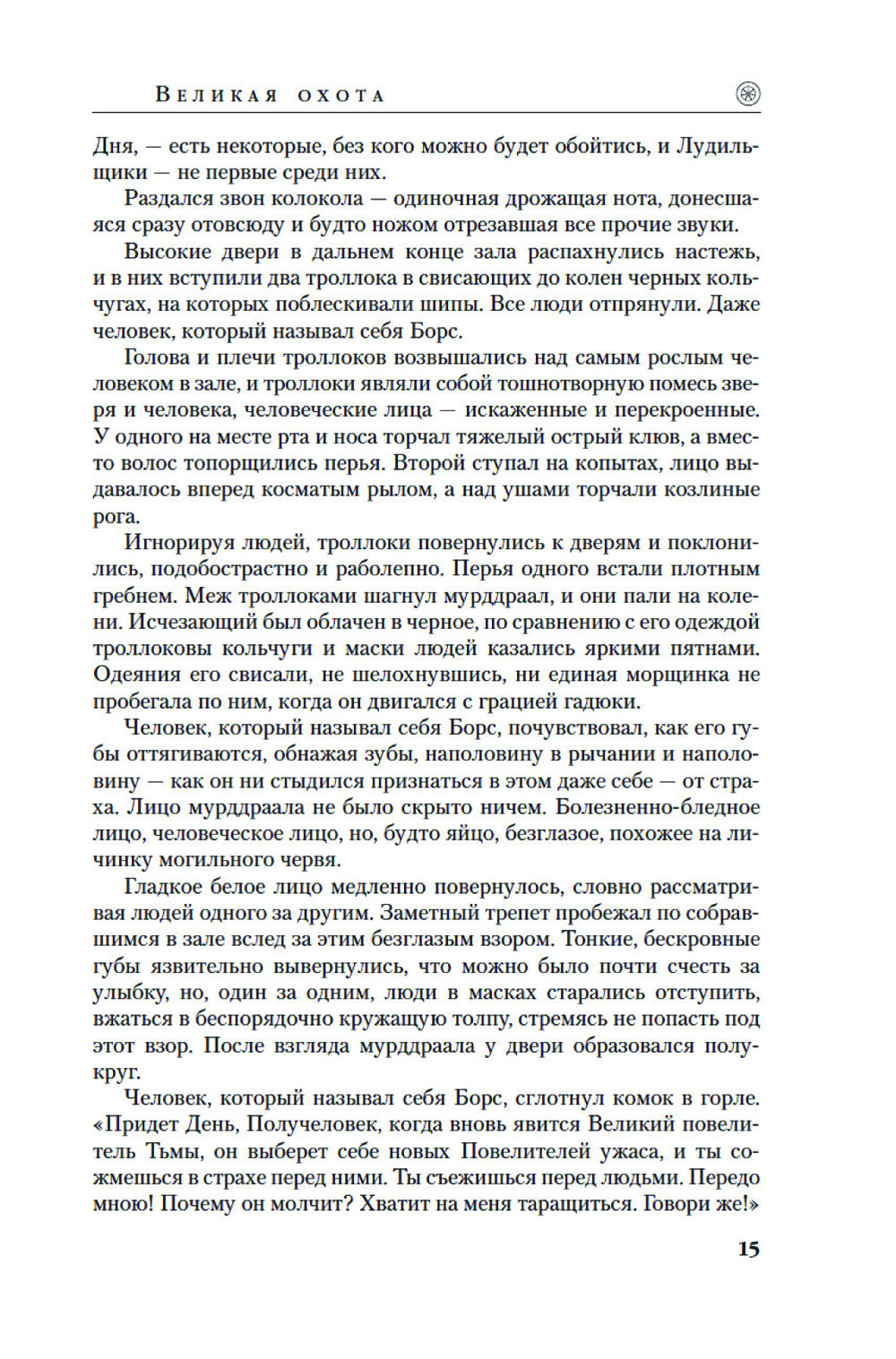 Рог Валир - легендарный Рог, обретенный Рандом и его спутниками возле Ока Мира, величайшего источника Силы, и способный призвать на Последнюю битву с Темным героев былых эпох, - похищен приспешниками Тьмы. Великая Охота за Рогом, описанная когда-то в легендах, возвращается на новый виток, и тот, на чьей стороне выступят возрожденные герои, окажется победителем в битве за власть над миром. События ужесточаются тем, что на материк возвращаются потомки тех воинов, которых в давние времена король Артур Ястребиное Крыло послал завоевывать земли за океаном, и их требование - вернуть обратно территории предков. И вернувшимся все равно, за кого они будут воевать… В настоящем издании тексты романов, составивших знаменитую эпопею «Колесо Времени», заново отредактированы и исправлены.| Издательство | Азбука |