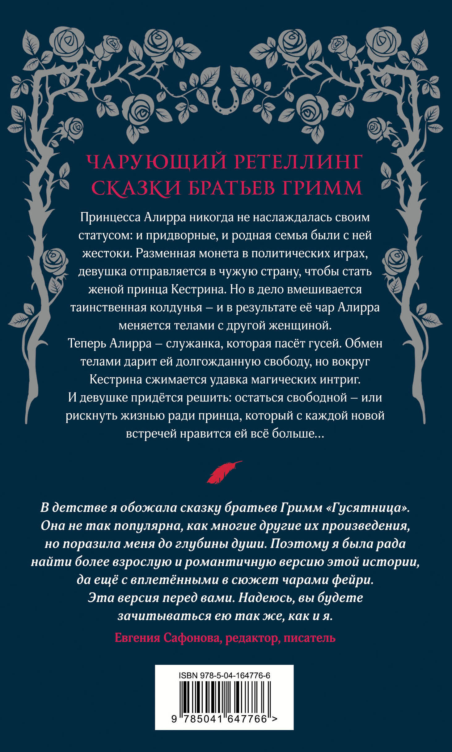 Принцесса Алирра никогда не наслаждалась своим статусом: и придворные, и родная семья были с ней жестоки. Разменная монета в политических играх, девушка отправляется в чужую страну, чтобы стать женой принца Кестрина. Но в дело вмешивается таинственная колдунья - и в результате её чар Алирра меняется телами с другой женщиной. Теперь Алирра - служанка, которая пасёт гусей. Обмен телами дарит ей долгожданную свободу, но вокруг Кестрина сжимается удавка магических интриг. И девушке придётся решить: остаться свободной - или рискнуть жизнью ради принца, который с каждой новой встречей нравится ей всё больше… Ретеллинг сказки Братьев Гримм. Продолжение новой серии сказочных ретеллингов. Смесь книг Мариссы Мейер и серии «Злые сказки Кристины Генри». Чарующий герой и сильная героиня - колючая и острая на язык принцесса, которую не радует её статус и которая хочет сама решать свою судьбу. Увлекательные придворные интриги, смесь рыцарской романтики и восточного колорита, а также козни фейри и харизматичный говорящий конь - все составляющие отличной истории.| Издательство | Эксмо |
