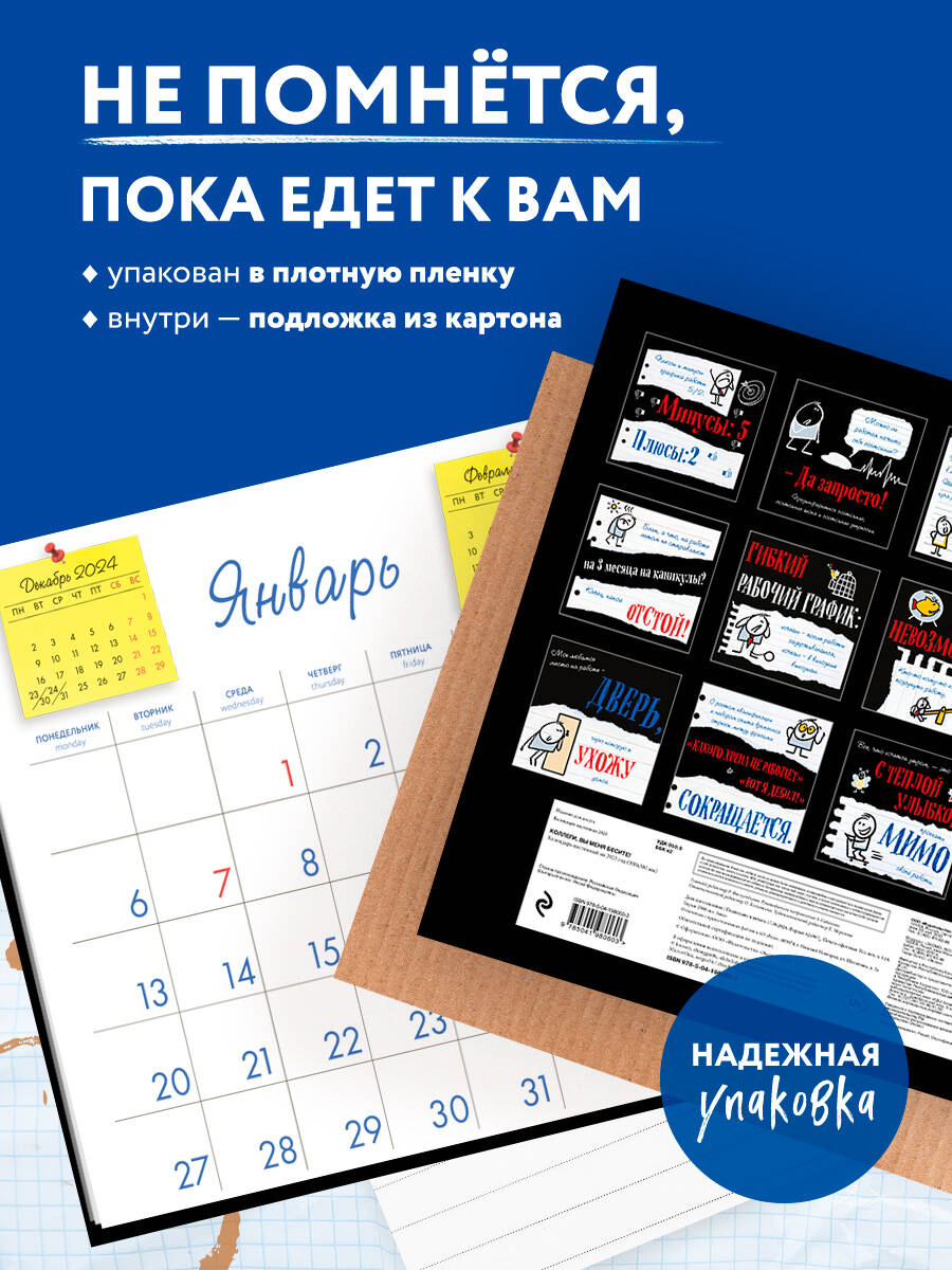 О календаре: Все на работе достали? Никто, кроме тебя, не работает? Руководство ставит слишком короткие дедлайны? Тогда пора дать всем понять, как тебя это достало! Повесь этот календарь у себя на столе или даже у всех на виду, чтобы все точно знали, что у тебя не десять рук, а твои коллеги - настоящее испытание! Большой формат 300х300 мм они точно не смогут не заметить! О серии: Наши настенные календари отличаются высоким качеством исполнения! Тщательно подобранные иллюстрации, напечатанные на глянцевой бумаге высочайшего качества, станут настоящим украшением дома, а в календарной сетке найдется место для ваших планов: большие клетки позволят делать записи и организовать свой год! В календаре также отмечены все государственные праздники. В серии настенных календарей издательства «ЭКСМО» каждый найдет тему по вкусу: великие художники, великолепные подборки с самыми знаменитыми произведениями искусства, легендарные кинематографические саги и игры, главные книжные авторы и бестселлеры, фотографии и иллюстрации любимых животных и многое-многое другое! Технические параметры: • Тип календаря - настенный перекидной. • Год - 2025. • Календарная сетка - с разбивкой по месяцам. • Вид скрепления - скрепка. • Ширина - 30 см. • Высота - 30 см. • Внутренний блок - мелованная бумага 130 г/м2. • Подложка - плотный гофрокартон для поддержания формы. • Индивидуальная упаковка в плотный целлофановый пакет.| Издательство | ООО "Издательство "Эксмо" |