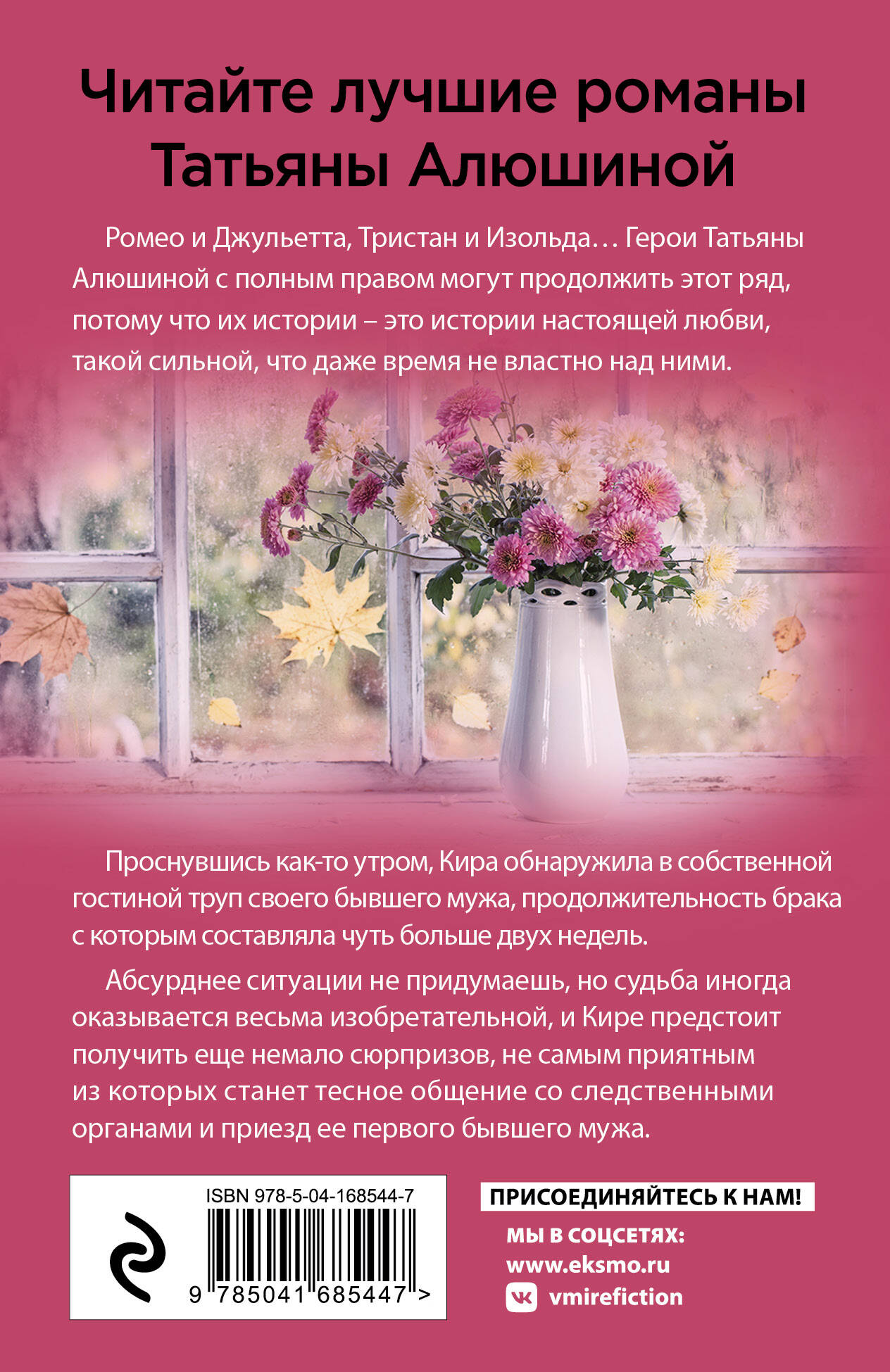 Романы Татьяны Алюшиной давно заслужили признание читательниц по всей стране, а тиражи ее книг насчитывают более пяти миллионов экземпляров. Захватывающие сюжеты, незабываемые чувства, подлинная страсть - ее книги читаются на одном дыхании, а истории главных героинь трогают сердца и снова помогают поверить в любовь! Проснувшись как-то утром, Кира обнаружила в собственной гостиной труп своего бывшего мужа, продолжительность брака с которым составляла чуть больше двух недель. Абсурднее ситуацию не придумаешь, но судьба иногда оказывается весьма изобретательной, и Кире предстоит получить еще немало сюрпризов, не самым приятным из которых станет самое тесное общение со следственными органами и приезд ее первого бывшего мужа.| Издательство | ООО "Издательство "Эксмо" |
