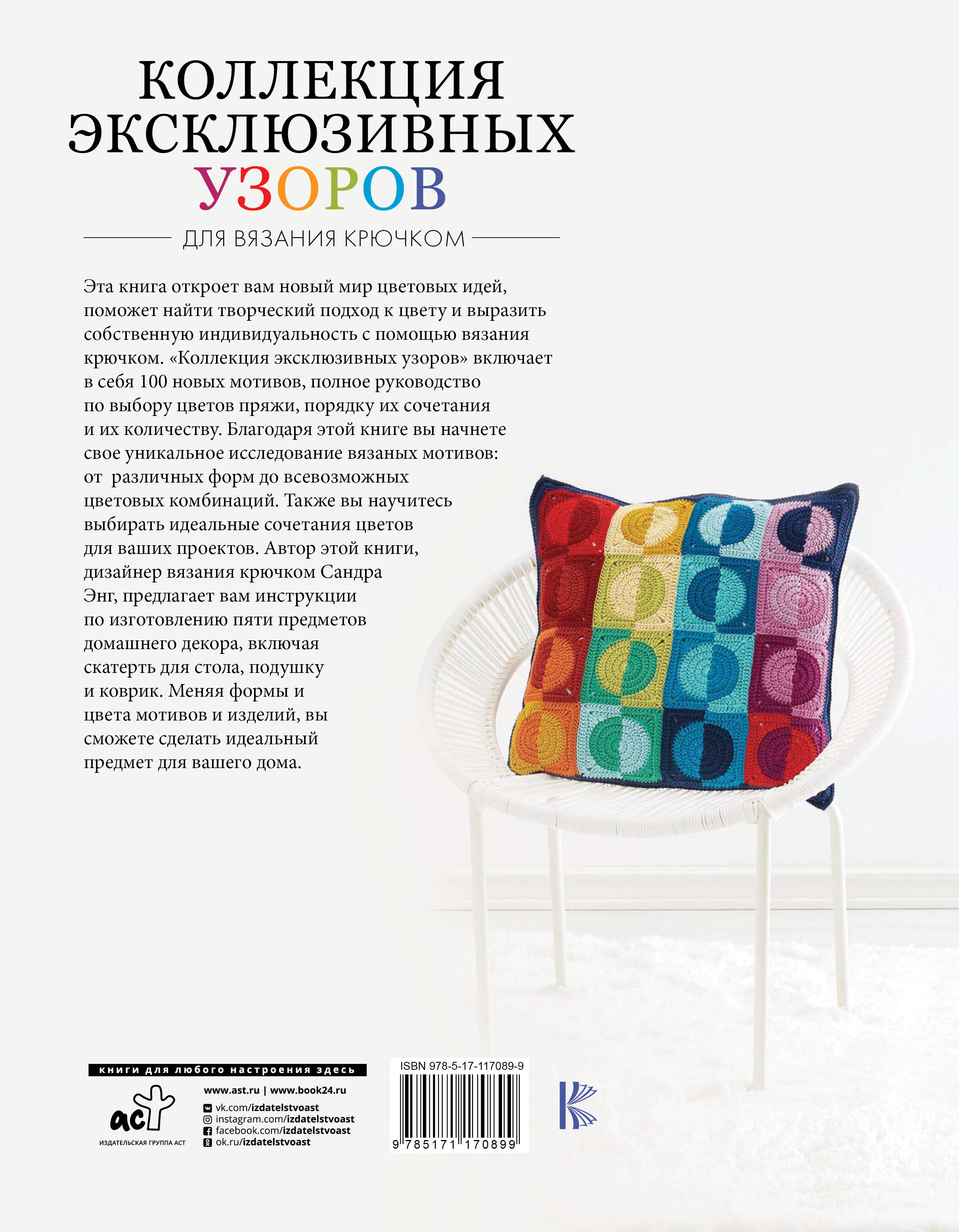 Эта книга откроет вам новый мир цветовых идей, поможет найти творческий подход к цвету и выразить собственную индивидуальность с помощью вязания крючком. «Коллекция эксклюзивных узоров» включает в себя 100 новых мотивов, полное руководство по выбору цветов пряжи, порядку их сочетания и их количеству. Благодаря этой книге вы начнете свое уникальное исследование вязаных мотивов: от различных форм до всевозможных цветовых комбинаций. Также вы научитесь выбирать идеальные сочетания цветов для ваших проектов. Автор этой книги, дизайнер вязания крючком Сандра Энг, предлагает вам инструкции по изготовлению пяти предметов домашнего декора, включая скатерть для стола, подушку и коврик. Меняя формы и цвета мотивов и изделий, вы сможете сделать идеальный предмет для вашего дома.| Издательство | ИЗДАТЕЛЬСТВО "АСТ" |