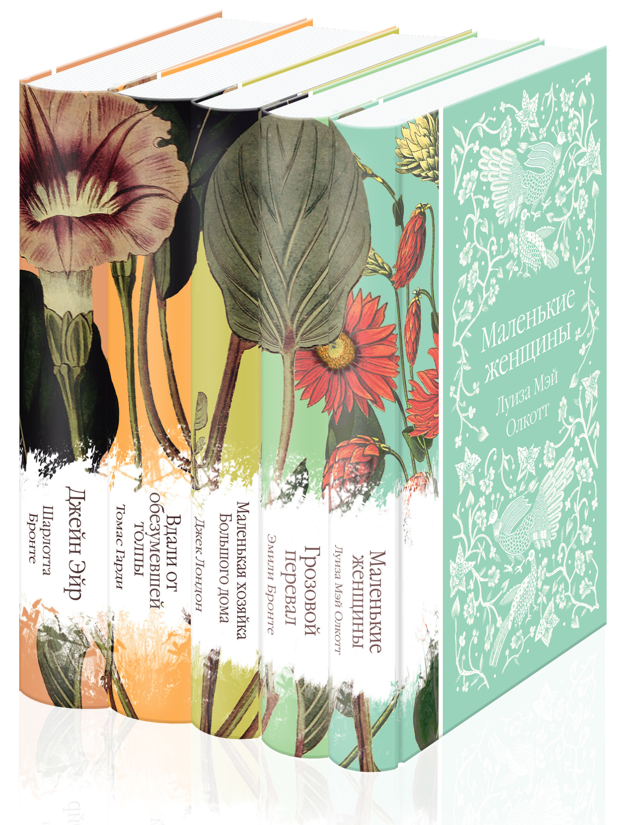 В комплект вошли «Джейн Эйр», «Вдали от обезумевшей толпы», «Маленькая хозяйка большого дома», «Грозовой перевал» и «Маленькие женщины» - пять классических женских романов, которые приятно читать и приятно дарить.