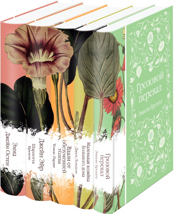 В комплект вошли "Джейн Эйр", "Вдали от обезумевшей толпы", "Маленькая хозяйка большого дома", "Грозовой перевал" и "Маленькие женщины" - пять классических женских романов, которые приятно читать и приятно дарить.