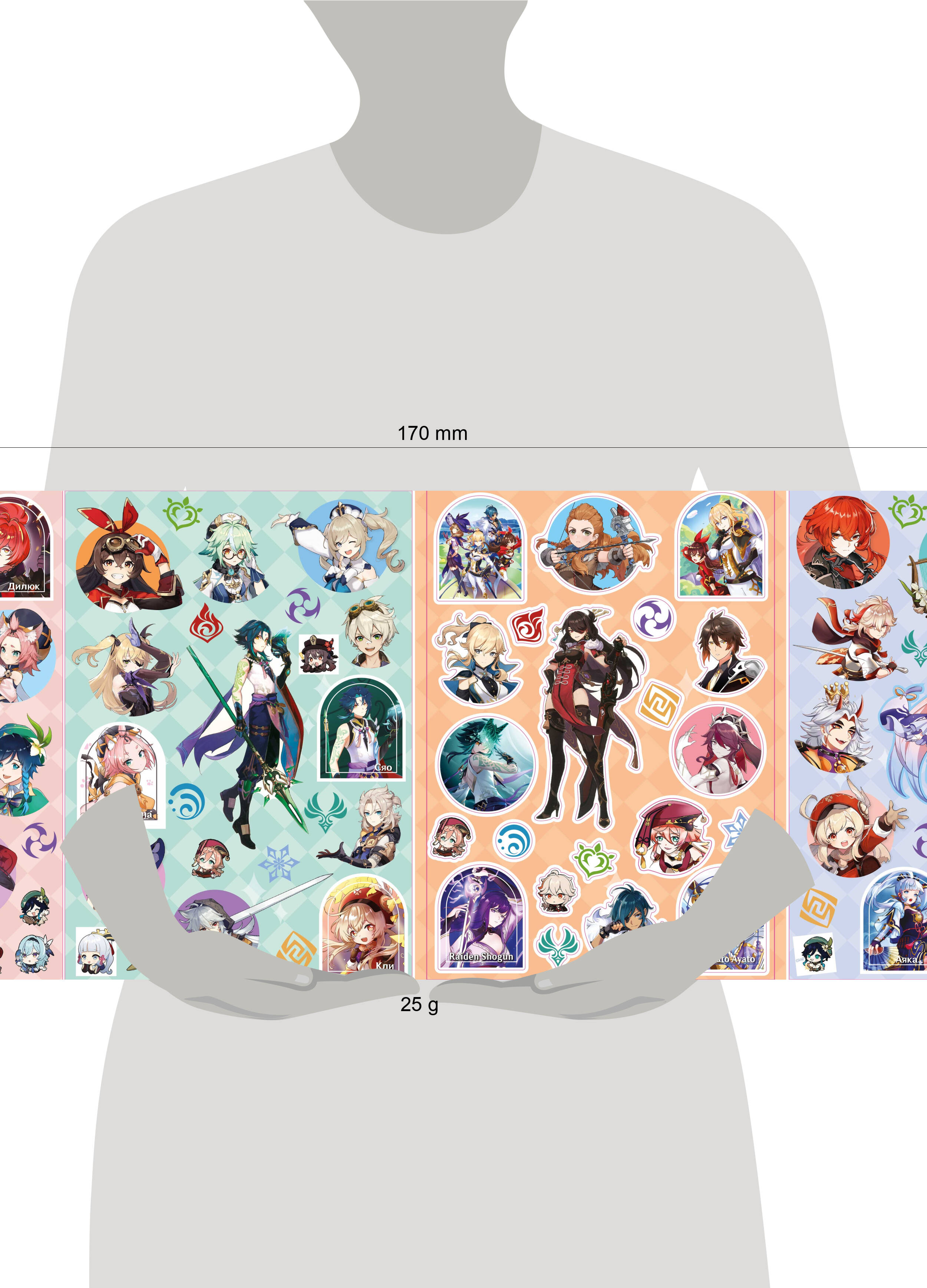 Аннотация: Коллекция наклеек 4 листа в упаковке с хедером Геншин