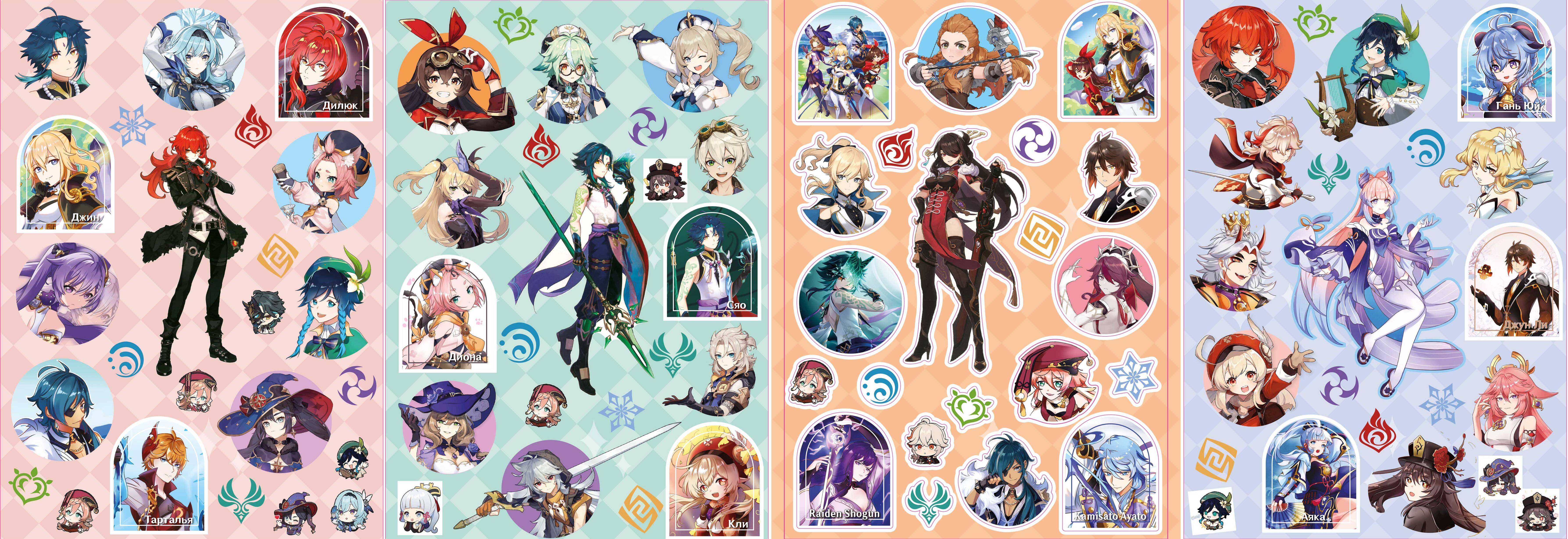 Коллекция наклеек 4 листа в упаковке с хедером Геншин