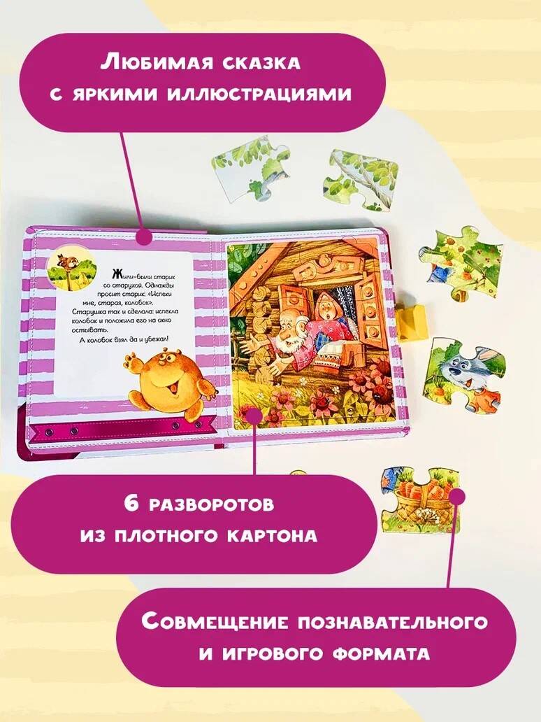 Русская народная сказка в новом формате книжек с пазлами с пластиковым замочком и ручкой! Любимые и известные нескольким поколениям родителей стихи и сказки, яркие иллюстрации популярных детских художников, развивающие пазлы и удобный замочек с ручкой, которые позволят взять книжку с собой в дорогу - все это соединилось в одном удобном формате. - на каждом развороте - пазл из 6 частей с удобной выемкой для маленьких пальчиков; - плотная обложка с пластиковыми замочком и ручкой - удобно играть и брать с собой в дорогу; - любимые классические стихи и сказки отлично подходят для обучения малыша чтению; - яркие иллюстрации известных художников. Ребенку будет не только интересно прочитать или послушать сказку, но и самому сложить картинки из пазлов!| Издательство | АСТ |