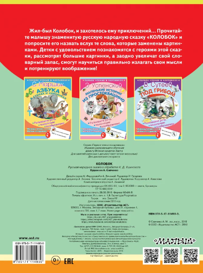 Жил-был Колобок, и захотелось ему приключений… Прочитайте малышу знаменитую русскую народную сказку «Колобок» и попросите его назвать вслух те слова, которые заменены картинками. Детки с удовольствием познакомятся с героями этой сказки, рассмотрят большие картинки, а заодно увеличат свой словарный запас, смогут научиться правильно излагать свои мысли и потренируют воображение!