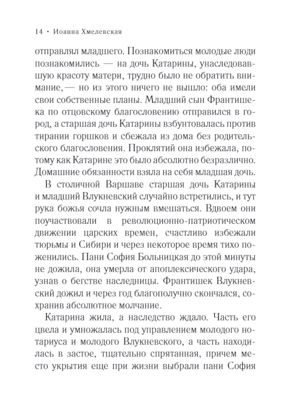 Когда-то, давным-давно, предки пани Иоанны были очень богаты. Они хотели оставить наследство своей единственной дочери, но непокорная девица вышла замуж за бедного парня, и завещание было переписано на одну из ее дочерей с условием, что получить его девушка могла только после смерти матери. Время шло, войны и революции не затронули хитроумно спрятанное богатство, но вот те, кто мог передать его наследнице, умерли. Но однажды спрятанные документы случайно нашли посторонние люди - и началась кровавая охота за сокровищами! Волей-неволей в нее приходится включиться и Иоанне, ведь ее мамуля уверена: искать надо в колодце, выкопанном ее предками... А колодцев таких ужасно много!| Издательство | Аркадия |