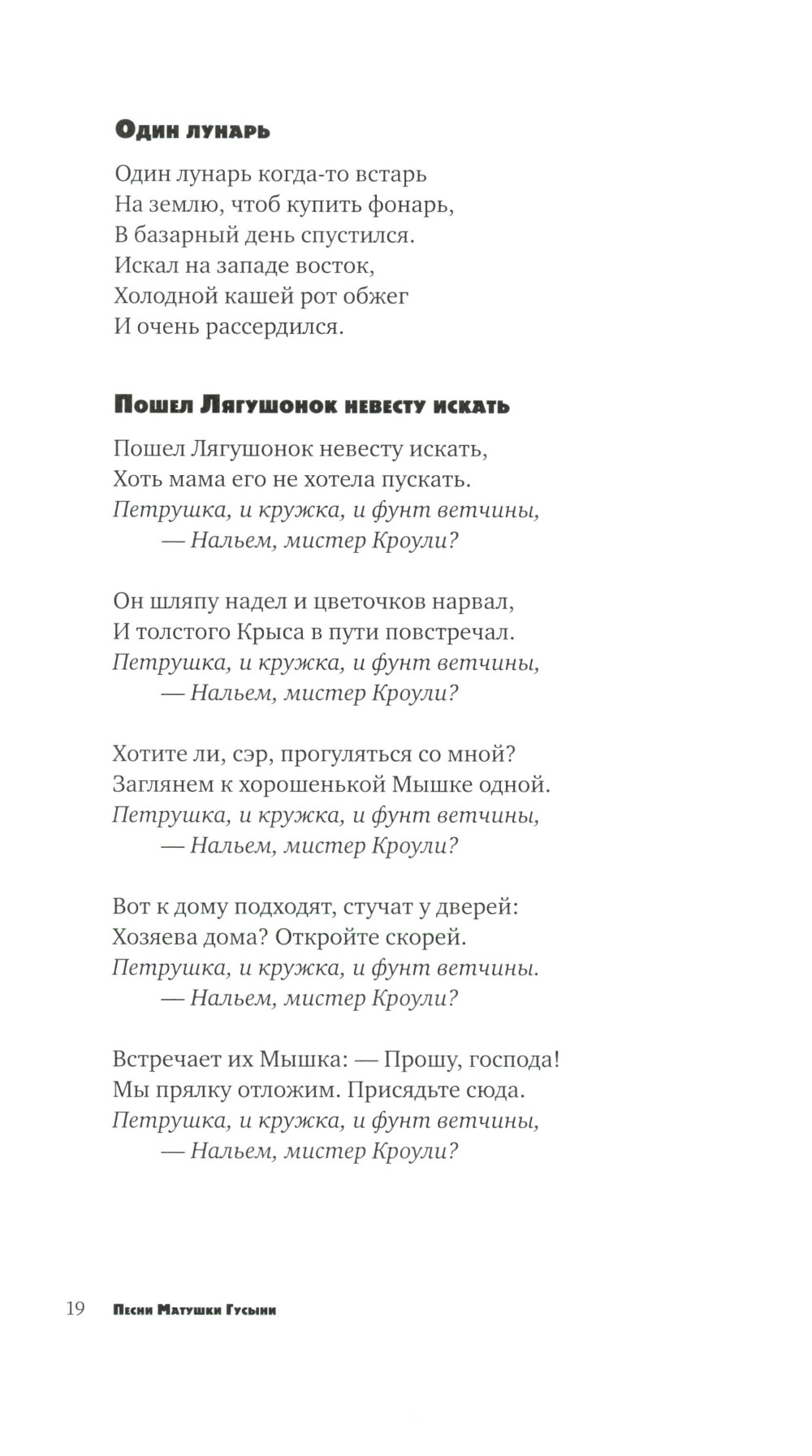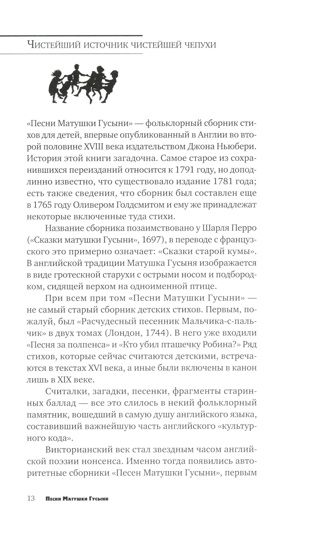 «Англия есть отечество карикатуры и пародии», заметил А. Пушкин двести лет назад, и это сказано не случайно. Английская комическая литература имеет давнюю и славную историю. Особое место занимает в ней поэзия нонсенса, то есть стихи в жанре смешной путаницы и чепухи. Сборник детских песенок и потешек «Песни Матушки Гусыни», вместе со стихами Эдварда Лира и Льюиса Кэрролла, - вот три кита, на которых стоит поэзия нонсенса. Любимые в России стихи Чуковского, Хармса и Маршака восходят к той же комической традиции. Поэт и переводчик Григорий Кружков, давно и плодотворно занимающийся этим жанром (ему, в частности, принадлежит один из лучших русских переводов поэмы Кэрролла «Охота на Снарка») представил в этой книге самые удачные свои опыты. Его книга состоит из двух частей. Первая часть посвящена вышеупомянутым «трем китам» нонсенса. Вторая часть «Предшественники и последователи» пунктирно прослеживает историю комической поэзии в Англии от шекспировской эпохи до ее звездного викторианского часа - и дальше. Стихи сопровождаются статьями и комментариями; а переводы плавно переходят в вольные подражания.| Издательство | Центр книги Рудомино |