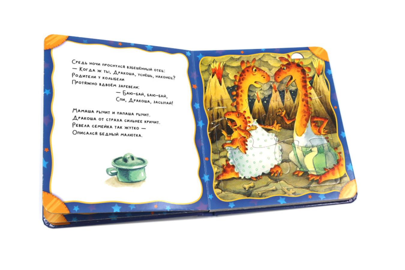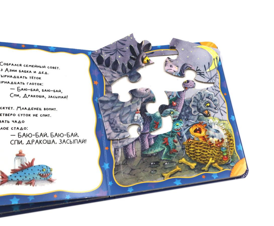 «Колыбельная для дракоши» современного классика Андрея Усачёва - в совершенно новом формате! На каждом из 6 разворотов малыша ждёт красочный пазл из 6 прочных деталей, благодаря которому ребёнок сможет развить интеллект, мелкую моторику, концентрацию внимания и усидчивость. А ещё после такой книжки легко и приятно засыпать! Яркие рисунки современной художницы Ирины Якимовой сделают чтение ещё более увлекательным. Играйте, учитесь, познавайте!| Издательство | АСТ |