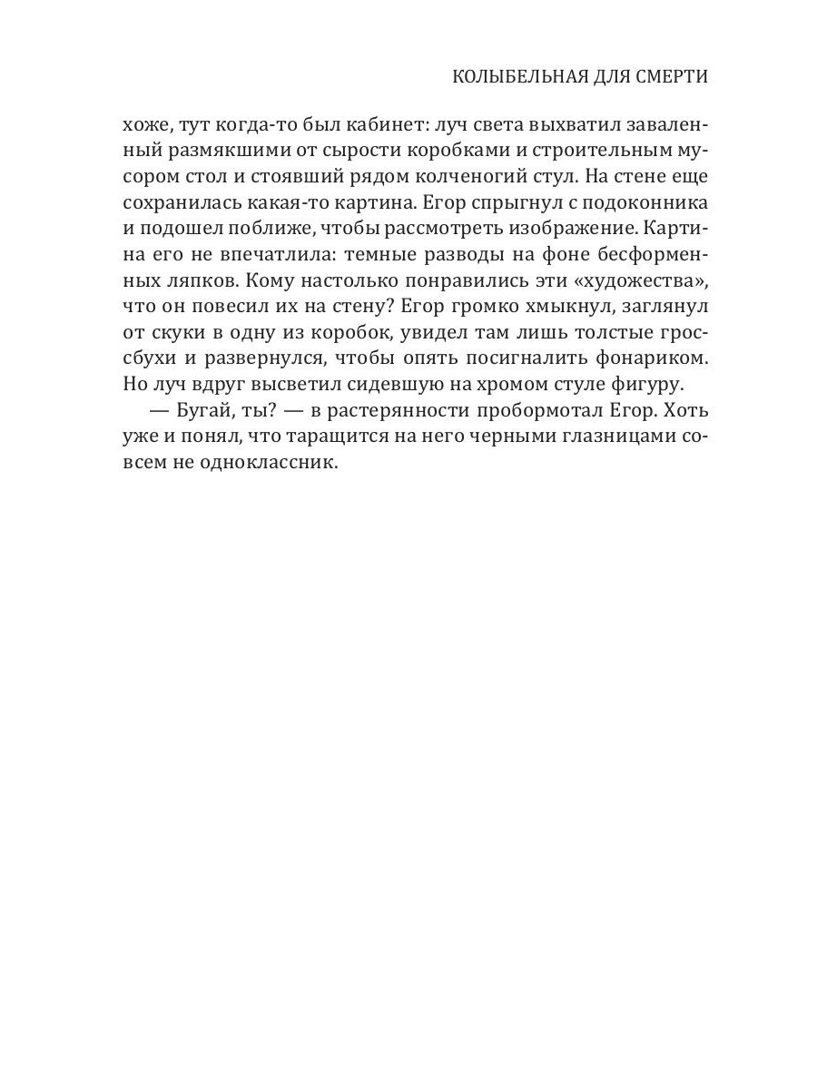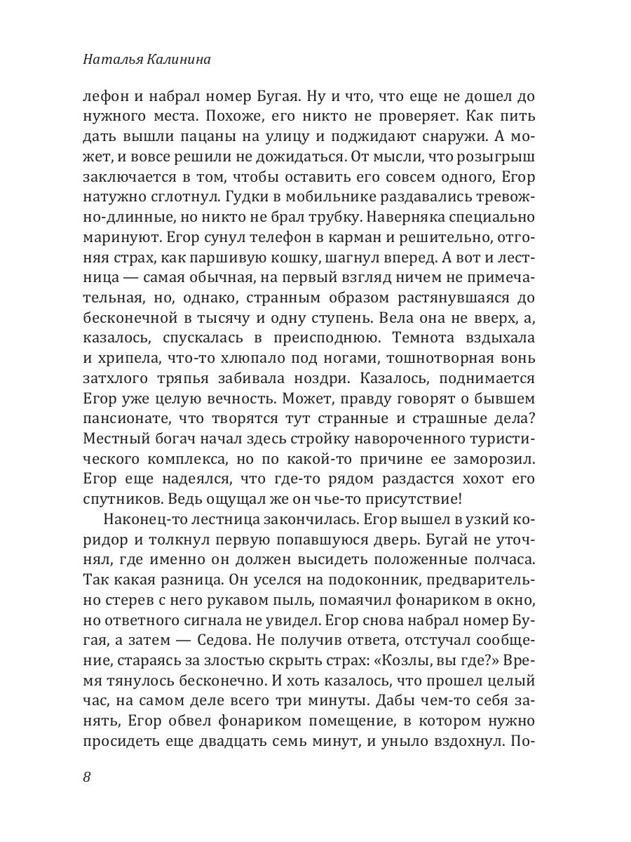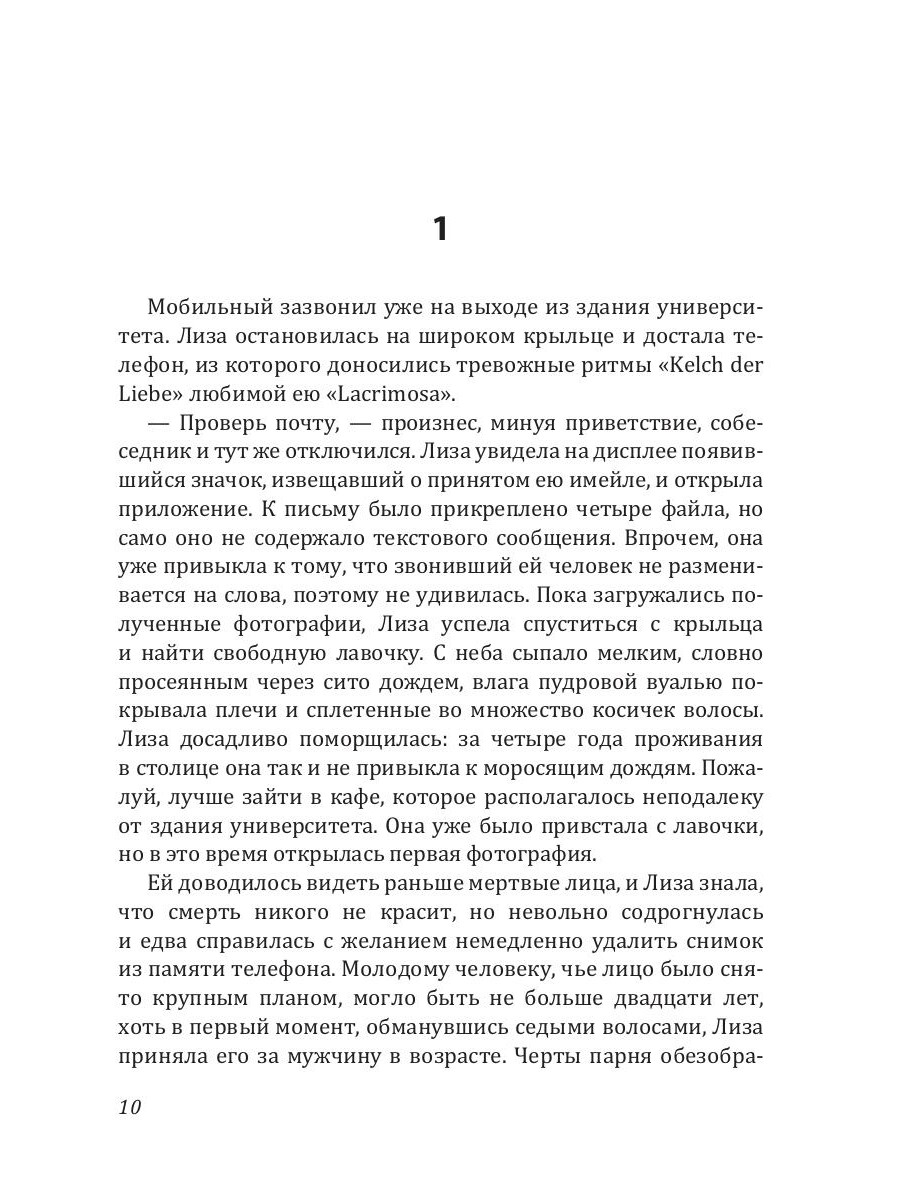 У Лизы есть дар ясновидения, но она почему то не может найти любимого мужчину, который пропал уже больше года назад. Помогать девушке взялся знаменитый экстрасенс Владлен, но дело так и не сдвинулось с мертвой точки. Все становится еще более запутанным, когда в полуразрушенном пансионате находят тела трех подростков, а сам Владлен погибает. Теперь Лизе предстоит заглянуть по ту сторону смерти, рискуя не найти обратную дорогу.| Издательство | Т8 RUGRAM |
