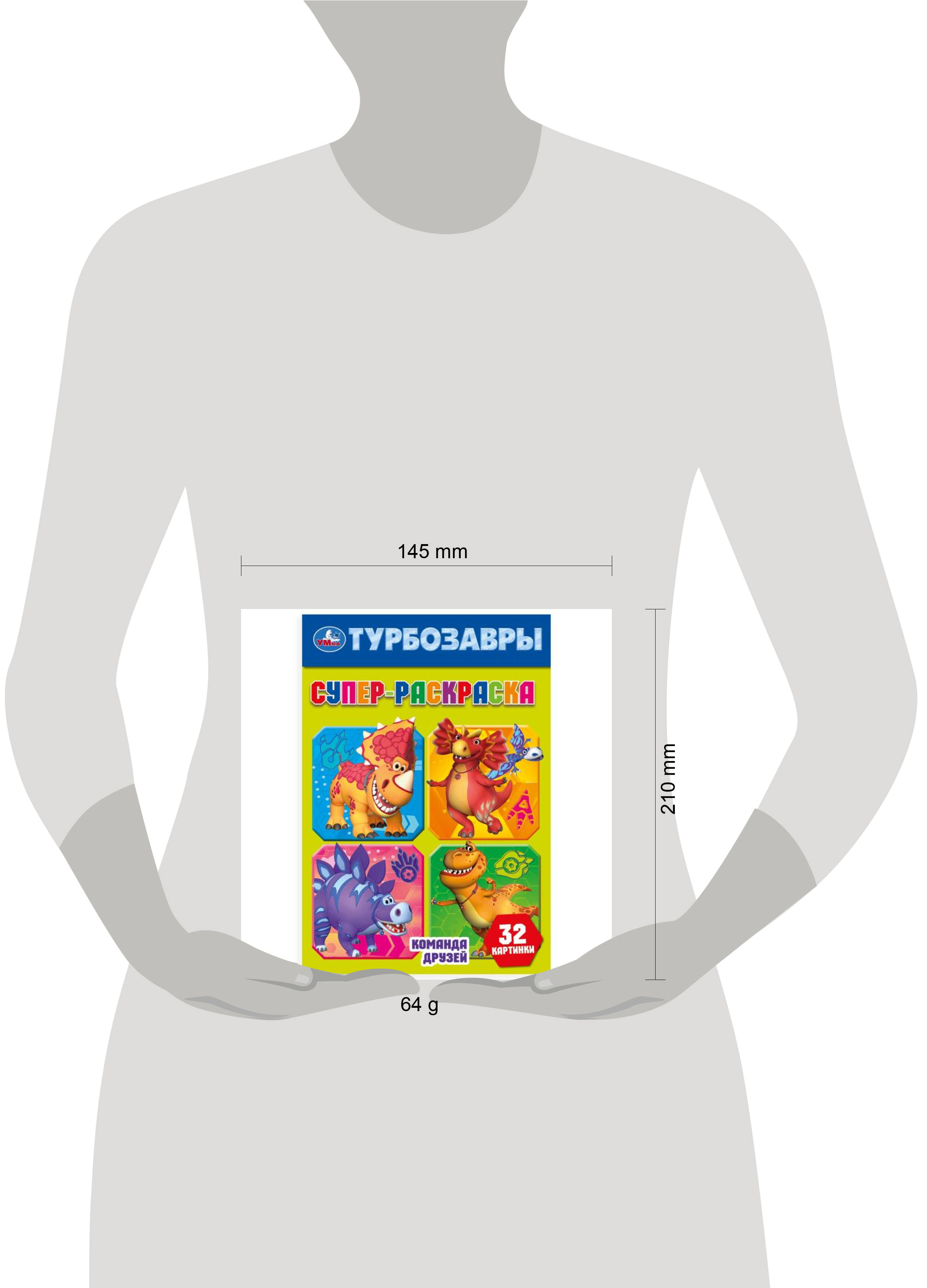 Аннотация: Команда друзей. Турбозавры. Супер-раскраска 32 картинки. 145х210мм. Скрепка. 32 стр. Умка в кор.50шт
