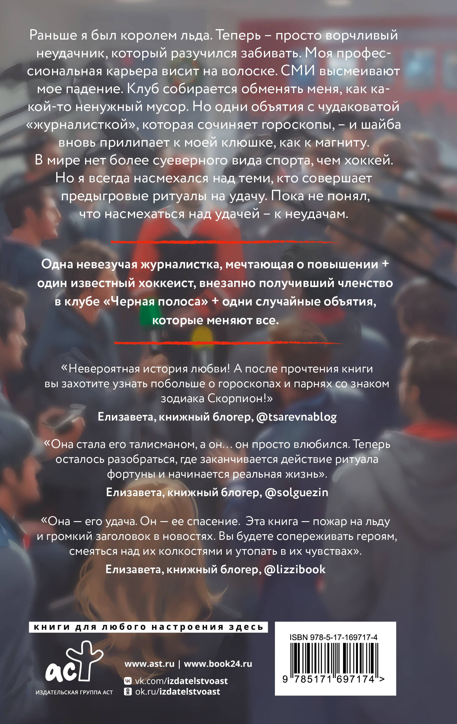 - Долгожданная новинка от Солы Рэйн, звезды жанра спортивной романтики, и Дианы Маш, популярного автора романов о любви. Книга выходит на бумаге раньше, чем появится онлайн! - Впервые в истории жанра Сола Рэйн и Диана Маш обыгрывают тему хоккейных примет. Иногда мастерства мало, а успех на ледовой арене может зависеть от странноватой любительницы гороскопов, словно заколдовавшей твою клюшку. - Другие тропы: «вынужденное сближение», «ворчун и солнышко». - Искрометные диалоги, яркие герои, чувственность и увлекательный сюжет - все это ждет читателя в новом романе. - Серия «Яркие чувства».| Издательство | Издательство "АСТ" |