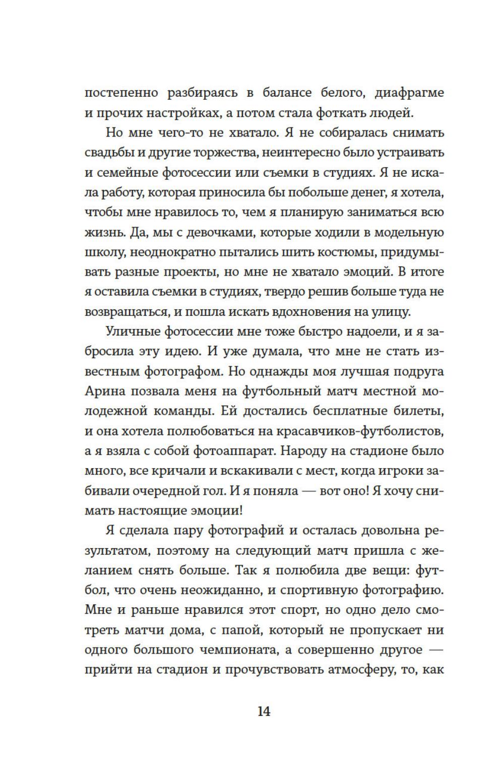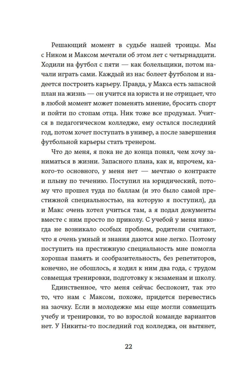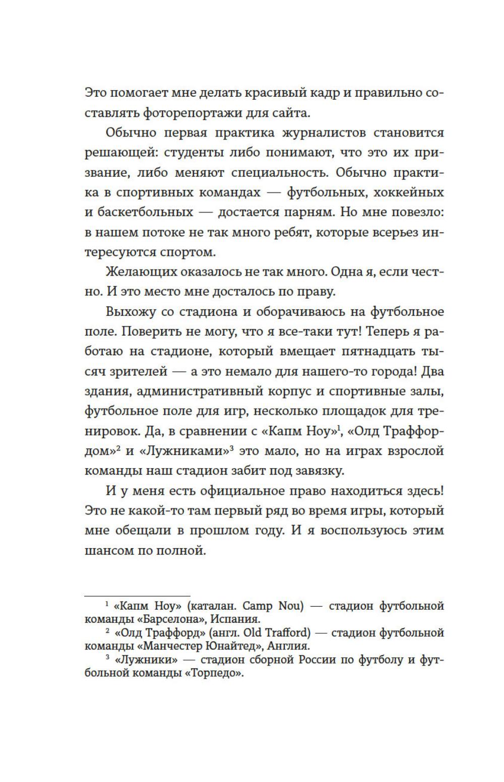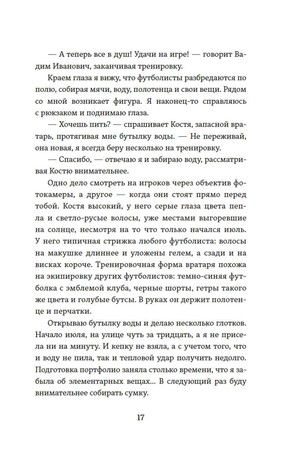 Кристина Вляпалась так вляпалась! Практика фотокорра в футбольной команде - моя мечта! И теперь я оказалась единственной девчонкой среди... одних только парней-футболистов. И все такие разные - серьезные, наглые, веселые, обаятельные. Вот только все чаще и чаще меня тянет к одному из них. Чувствует ли Костя ко мне то же самое? Или же я открою ему свое сердце и это станет моей самой большой ошибкой? Костя Бесконечные игры и тренировки с утра до ночи. Я всегда хотел стать лучшим вратарем в молодежке. Но когда к команде присоединилась Крис, новый фотокорр, все пошло наперекосяк. Каждую игру я смотрю только на нее, упускаю мячи и вместе с ними - высокий рейтинг в турнирной таблице. Только как быть, если единственное, о чем я мечтаю перед сном, ощутить аромат клубники со сливками - ее запах?..| Издательство | Махаон |