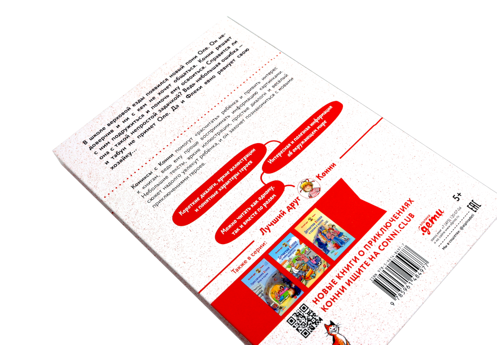 Комплект состоит из двух комиксов с Конни. О комиксе «Новичок на конюшне»: В школе верховой езды появился новый пони Оле. Он недоверчив и ни с кем не хочет общаться. Конни решает с ним подружиться и помочь ему освоиться. Справится ли она с такой непростой задачкой? Ведь небольшая ошибка - и табун не примет Оле. Да и Флеки явно ревнует свою хозяйку... О комиксе «Приключения на ферме»: Ура! На выходные Конни отправляется на ферму к своей подруге Аннике. Здесь столько интересного и всегда есть чем заняться: погладить кроликов, собрать яйца у кур, пойти купаться вместе с лошадьми, посмотреть, как доят коров или собирают сено. Главное - не попасться на глаза воинственному гусю Фродо. Ночь девочки решают провести на сеновале. Вдруг они слышат странный шум... Неужели это привидение?