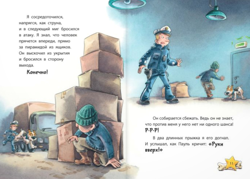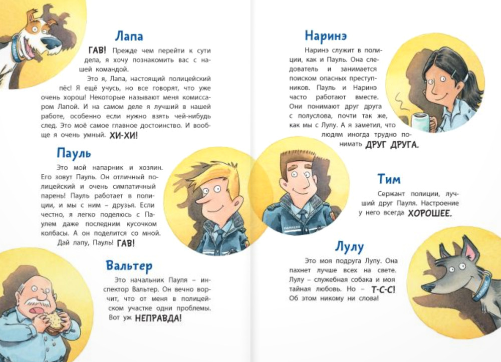 Познакомьтесь с самым очаровательным, весёлым и умным полицейским псом на свете! Комиссар Лапа и его напарник Пауль расследуют дерзкое преступление - в торговом центре на глазах десятков свидетелей исчезает драгоценное бриллиантовое колье. Будьте уверены, если за дело берётся комиссар Лапа, никакие уловки не помогут преступнику скрыться! Катя Райдер - автор более ста пятидесяти детских и юношеских книг, которые переведены на многие языки мира. Она очень любит собак. У неё дома живёт пёс Польди, который тоже мечтает стать настоящим полицейским. Дирк Хенниг - известный иллюстратор. У него тоже есть четвероногий друг по кличке Пико. Именно он вдохновил художника на создание образа комиссара Лапы.| Издательство | ЭНАС-КНИГА |