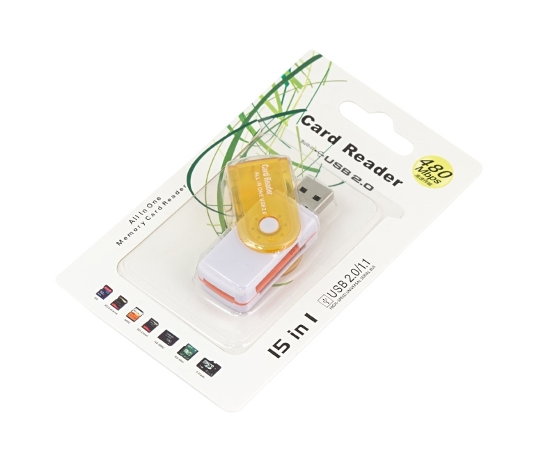 Компактный кардридер Fusion SDHC / Micro SD / SDXC / M2 / TF / оранжевый