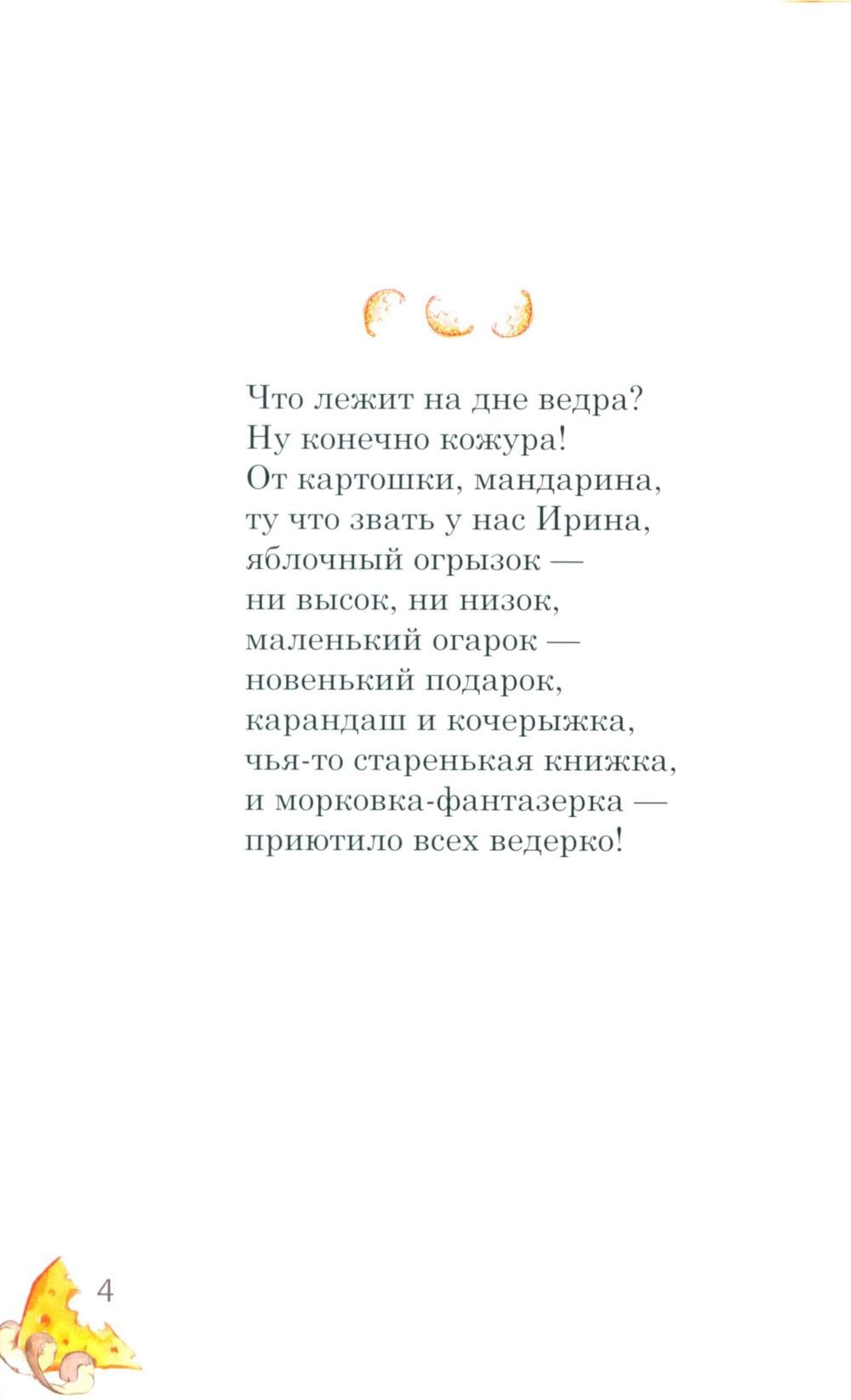 Перед вами необычная книжка. Дело в том, что ее герои - это обитатели мусорного ведра, которые оказались в нем не по своей воле. У каждого героя своя история, своя судьба, почти человеческие. Некоторые находят в ведре своих друзей: так пуговка подружилась со скатеркой, камешек - со свечкой, редиска с ириской. А апельсин с морковкой. Но герои этого замечательного ведра не унывают, а мечтают о лучшей доле и вспоминают свои золотые деньки!| Издательство | ИПО "У Никитских ворот" |