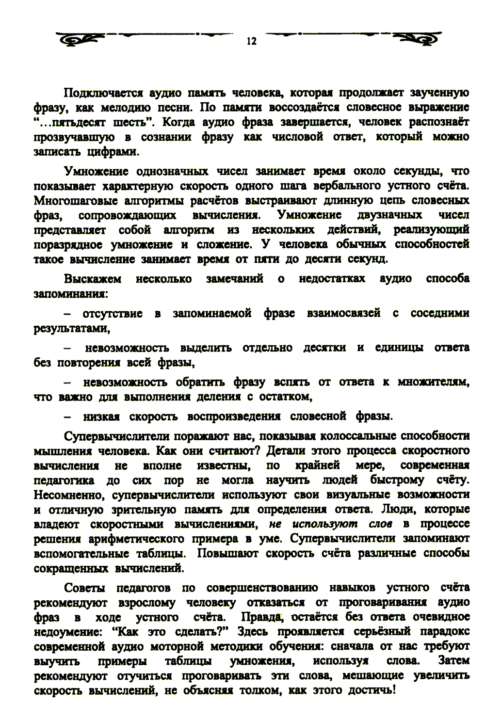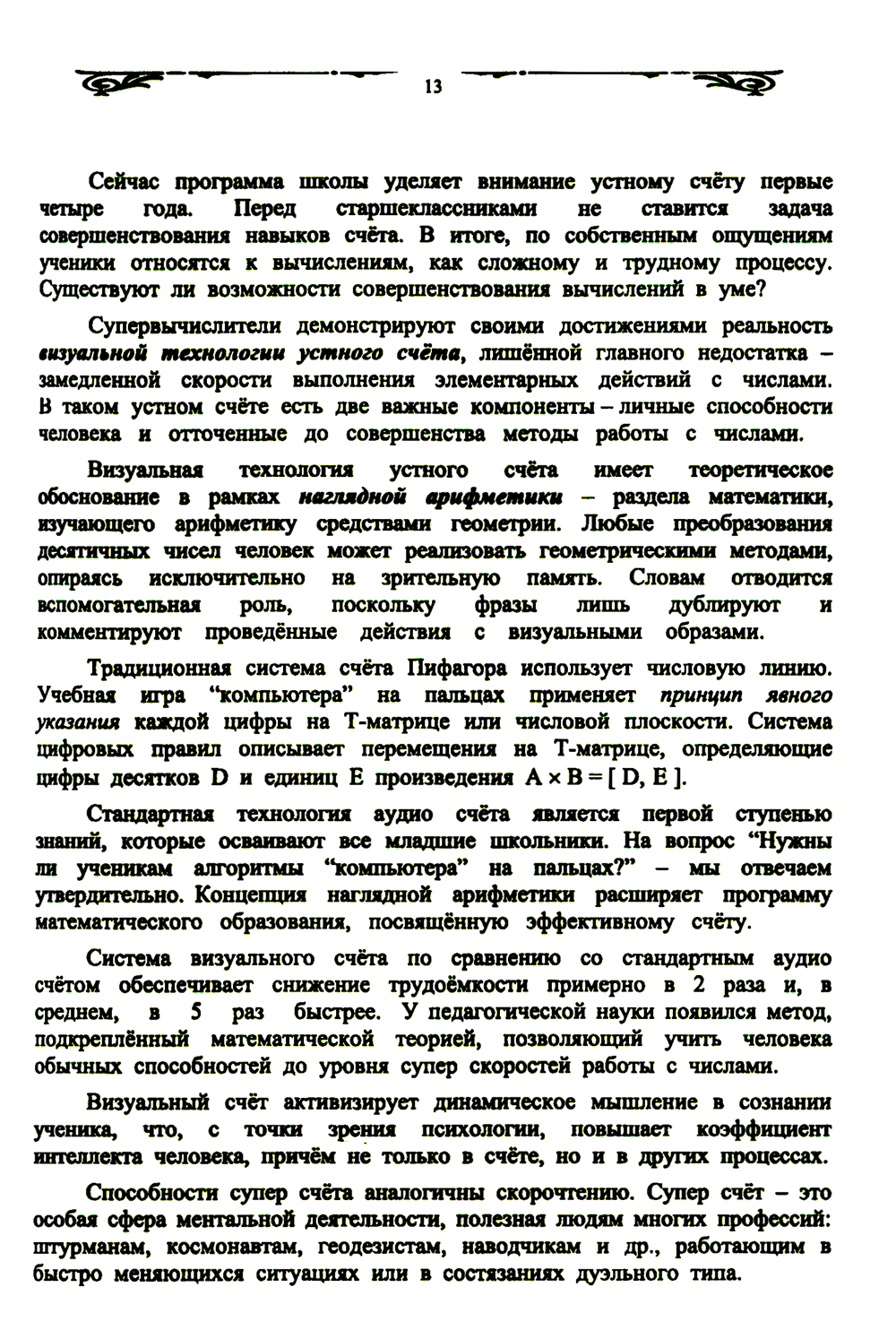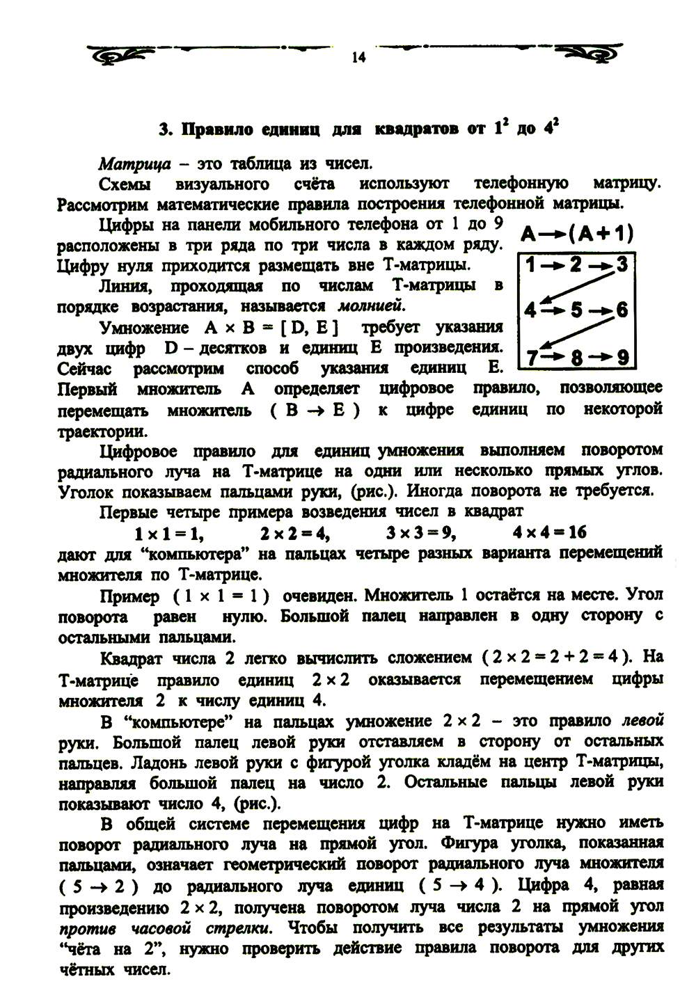 Книга посвящена описанию эффективных алгоритмов вычислений. Успех системе счёта «компьютера» на пальцах обеспечивают наглядные схемы и алгоритмы, показанные руками. Вычислительная работа из утомительного занятия превращается в захватывающую внимание игру с числами. Так, умножение на три 3 х А задаётся правилом правой руки, которое использует поворот на прямой угол радиальных лучей телефонной Т-маприцы. Кроме заученных фраз типа «дважды два - четыре», полезны цифровые правила, позволяющие мгновенно указывать цифры результатов сложения, вычитания, умножения и целочисленного деления. Сокращённые схемы вычислений позволяют увеличить скорость устного счёта в пять раз. Новый формат таблицы умножения - девятилистник - лучше таблицы Пифагора показывает симметрии поворотов чисел. Наглядные и выразительные визуальные образы в «компьютере» на пальцах сокращают время изучения таблицы умножения. Для юных математиков предлагается стихотворный арифметический букварь с цифровыми правилами умножения. Книга является основой учебного курса для школьников по технологии эффективного счёта. Наглядные иллюстрации помогут педагогам и родителям, обучающим детей арифметике. Книга будет полезна математикам, экономистам, физикам, инженерам, штурманам, психологам, философам и всем тем, кому интересны свойства чисел и предельные возможности человека в устном счёте.| Издательство | ЛЕНАНД |