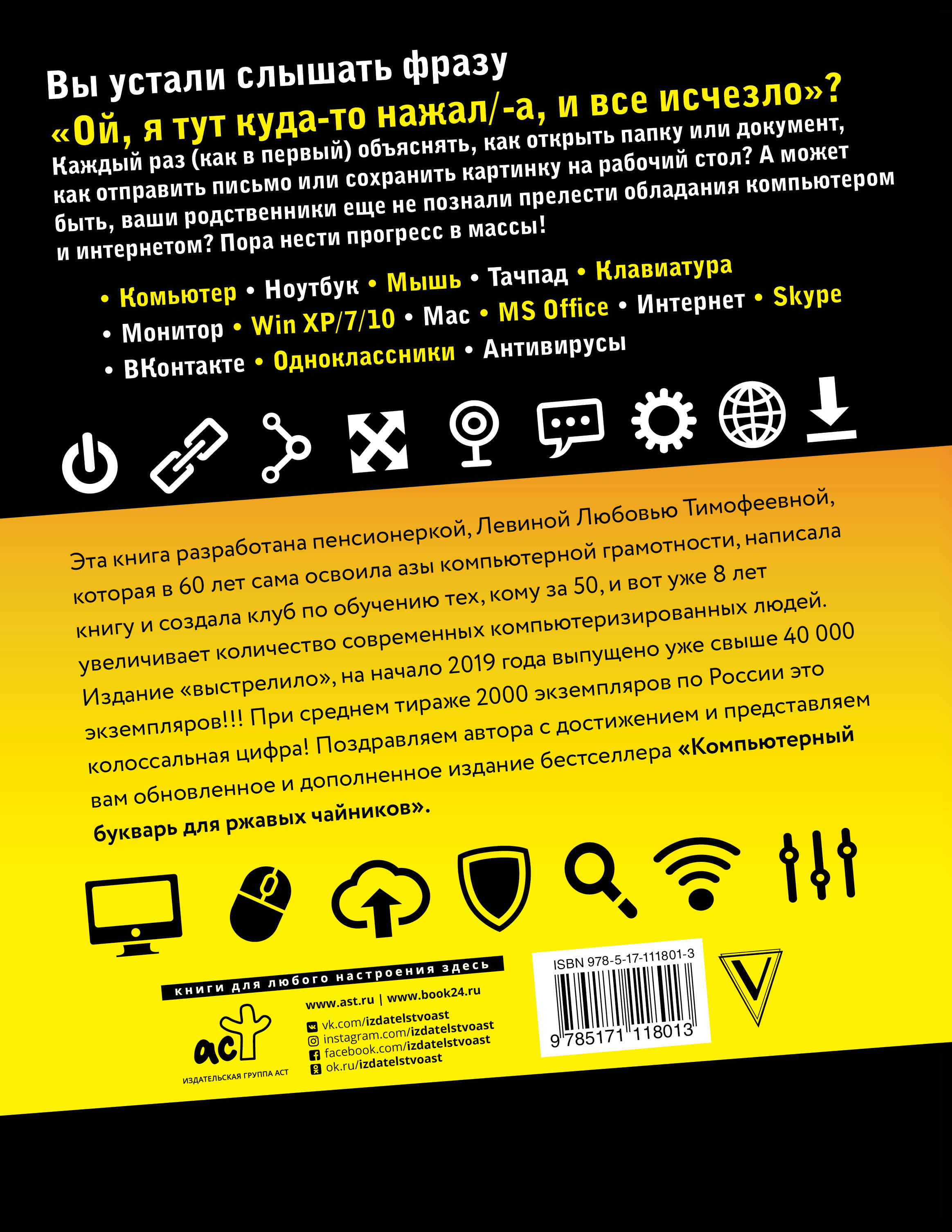 Уникальный самоучитель работы на компьютере, продано свыше 40 000 экземпляров. Просто, доступно, с иллюстрациями. Книга для старшего поколения от бабушки. Обновленное издание 2019 года.| Издательство | Издательство "АСТ" |