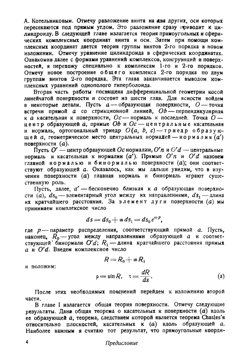 Вниманию читателей предлагается классический труд русского и советского математика и механика Д.Н.Зейлигера, в котором излагается теория линейчатой геометрии (раздел геометрии, где в качестве элементов пространства рассматриваются прямые линии) с приложениями к кинематике - на основе результатов, полученных методом винтового исчисления. Книга состоит из трех частей. В первой части излагается теория комплексных чисел и комплексная теория винтов. Вторая часть посвящена дифференциальной геометрии косой линейчатой поверхности; излагаются общая теория поверхности и ее приложения, метод изучения линейчатой поверхности при помощи декартовых координат и др. Третья часть содержит теорию конгруэнций. Книга рекомендуется математикам-геометрам - научным работникам, преподавателям, аспирантам и студентам высших учебных заведений.