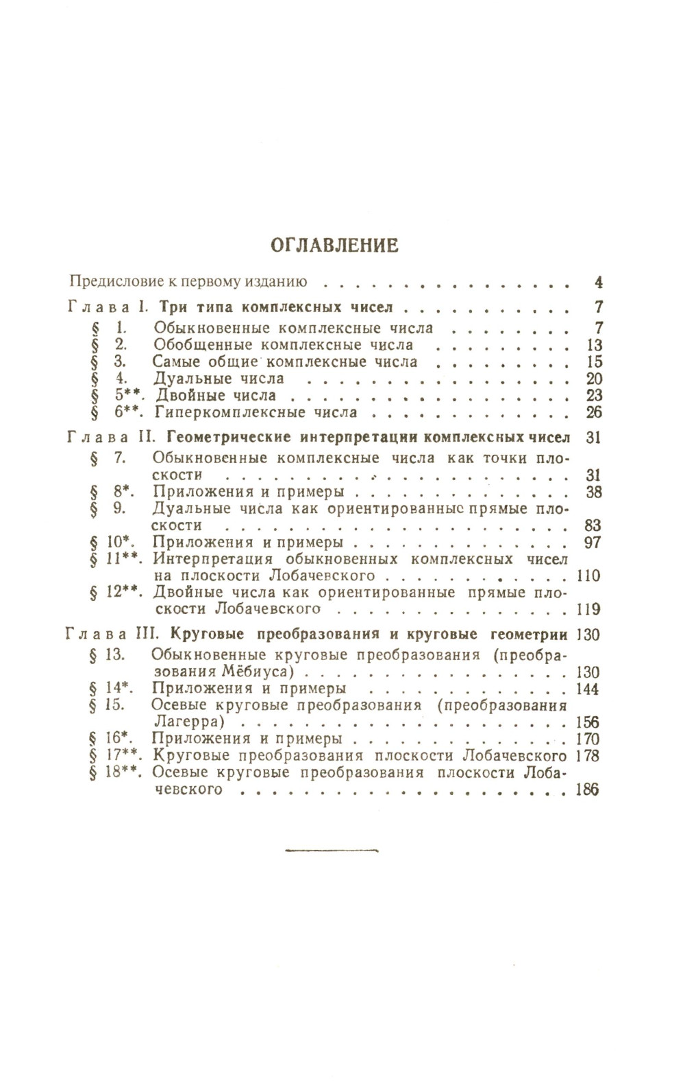 Настоящее издание в доступной форме знакомит читателя с кругом вопросов, связывающих учение о комплексных числах с геометрией. Автор рассматривает разнородные геометрические теоремы, доказываемые с использованием разных типов комплексных чисел. Дается также краткое изложение вопроса о применениях аппарата комплексных чисел в геометрии Лобачевского. Книга рассчитана на школьников старших классов и студентов математических отделений университетов и педагогических институтов. Она может быть использована в работе математических кружков. Изложенный в книге материал может также представить интерес для преподавателей математики средней и высшей школы.