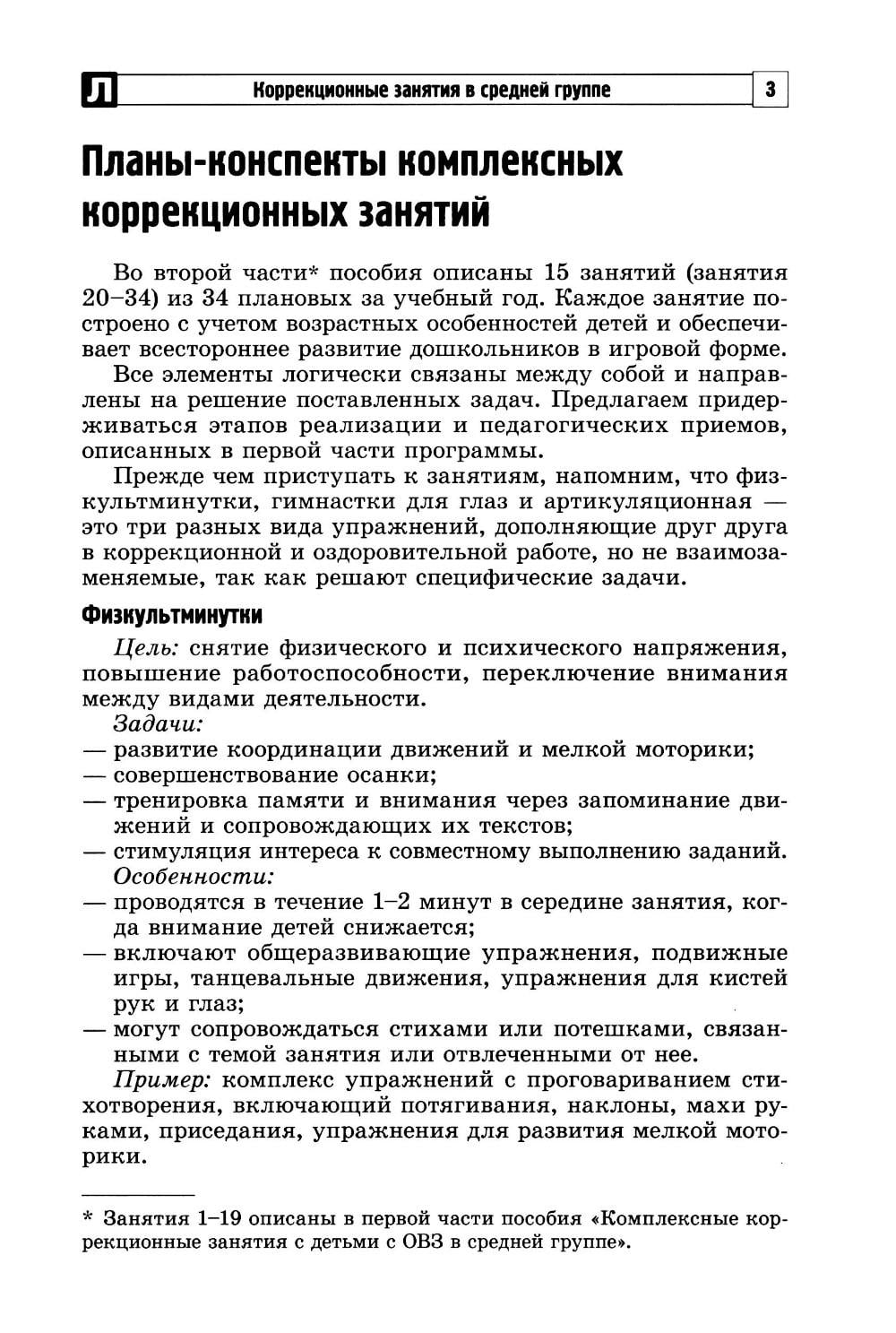 Комплексные коррекционные занятия с детьми с ОВЗ в средней группе. Ч. 2