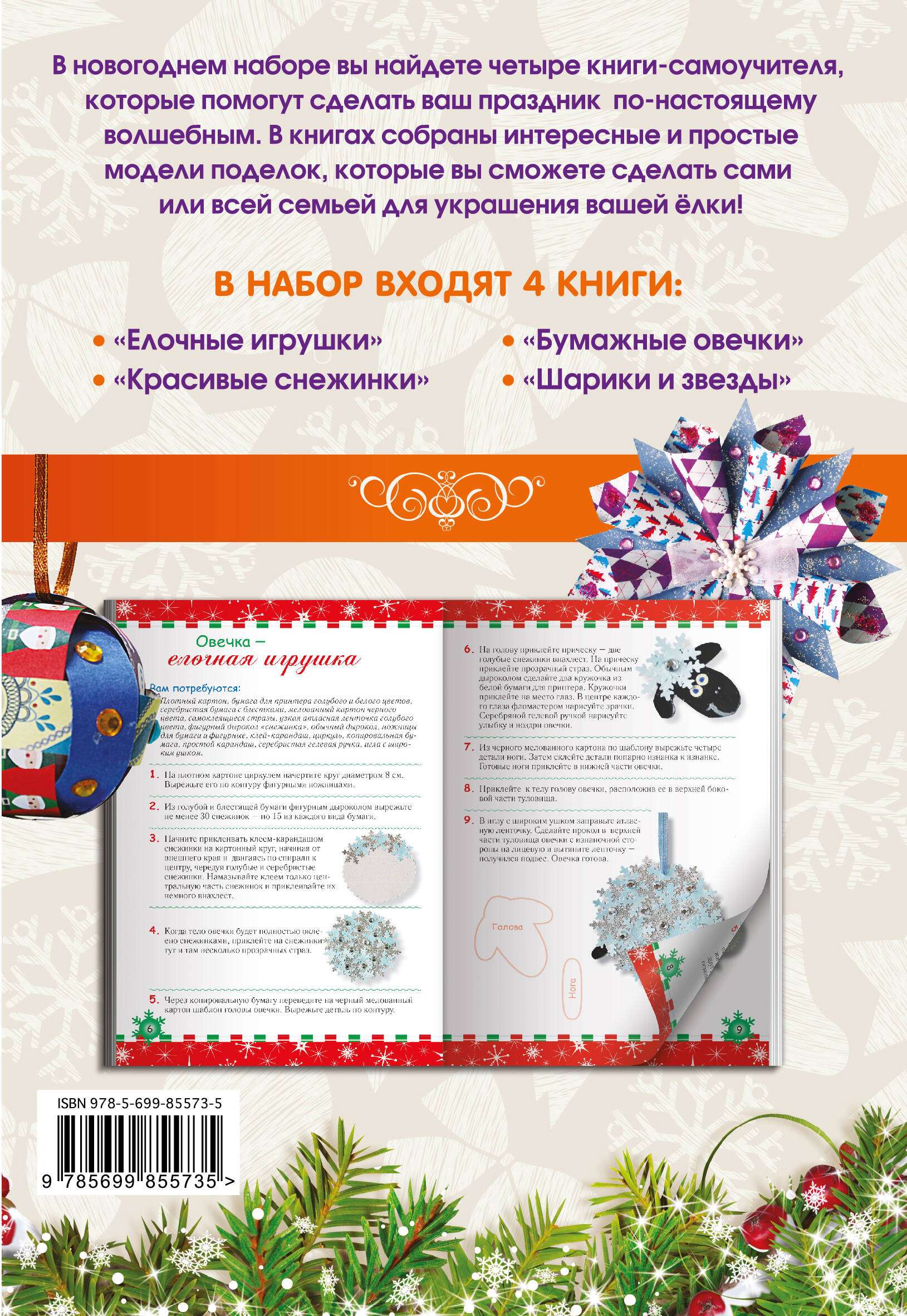 В набор входят 4 книги: "Елочные игрушки" "Красивые снежинки" "Бумажные овечки" "Шарики и звезды"| Издательство | ООО "Издательство "Эксмо" |