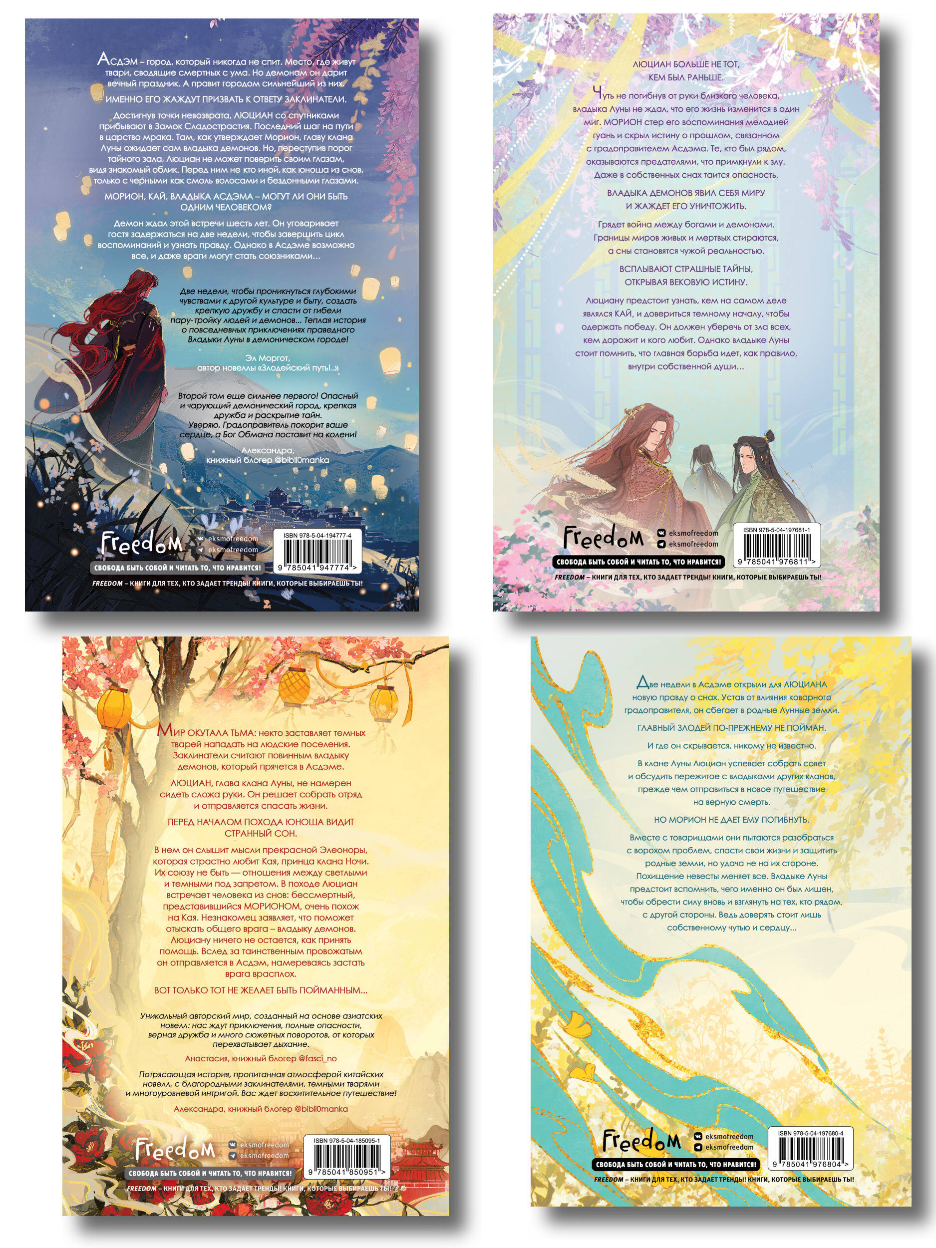 Комплект 4-х книг. «Янтарь рассеивает тьму (Владыка демонов)» (ИК) Оригинальная авторская история о противостоянии Люциана и демонов - от популярной в российском фандоме писательницы Люциды Аквилы. Авторский мир в азиатских декорациях окунет вас в атмосферу таинственности и поведает о судьбоносной встрече добряка и злодея. В издания включены бонусные главы, а также цветные вклейки с персонажами и портреты главных героев на форзацах. Книги выпускаются с суперобложкой, украшенной фольгой! Мир вокруг окутала тьма: некто заставляет темных тварей нападать на людские поселения. Заклинатели считают повинным владыку демонов из Асдэма. Люциан, глава клана Луны, решает собрать отряд и отправляется спасать жизни. В походе Люциан встречает человека из своих снов: бессмертный, представившийся Морионом, очень похож на Кая. Незнакомец заявляет, что поможет отыскать владыку демонов. Вслед за Морионом Люциан отправляется в Асдэм. Вот только враг не желает быть пойманным... Для заядлых фанатов азиатского фэнтези произведения Люциды станут глотком свежего воздуха, а для новичков - способом окунуться в ранее неизведанное. В комплект включены все книги цикла.| Издательство | ООО "Издательство "Эксмо" |