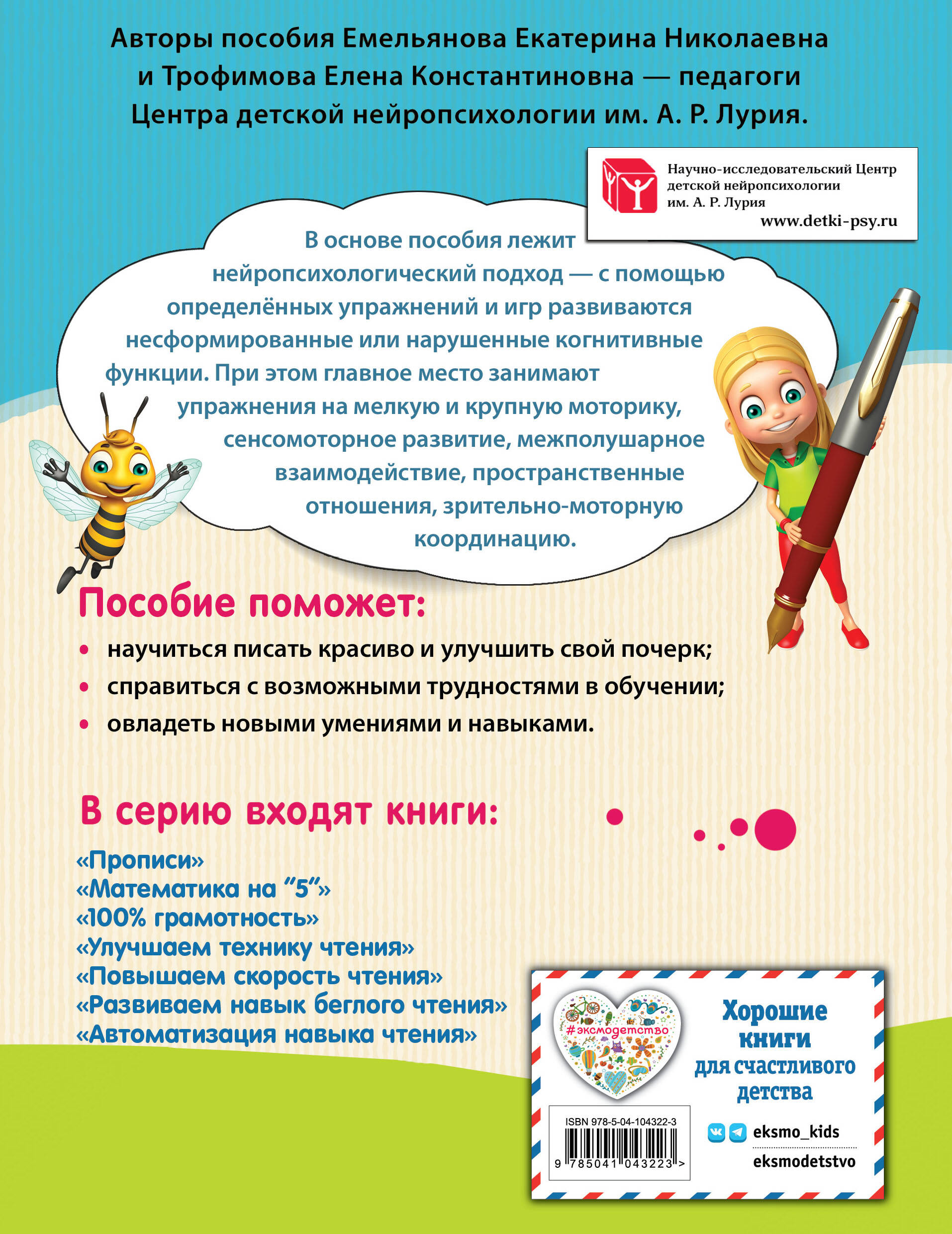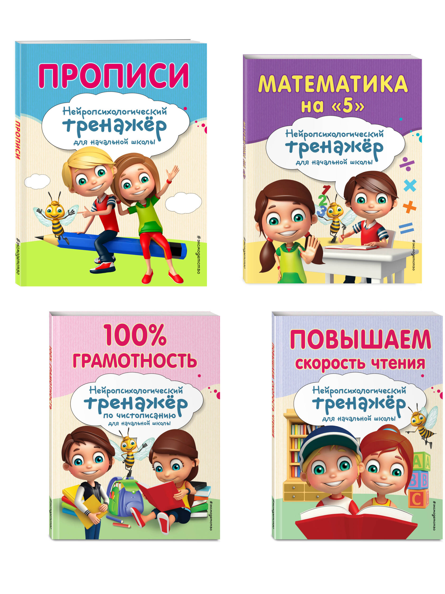 Комплект из 4--х развивающих тренажёров от издательства «Эксмо» для детей 8-9-10 лет поможет школьнику улучшить основные навыки, необходимые для успешного обучения. Пособие «Прописи» направлено на отработку красивого почерка. Порядок выполнения заданий выстроен таким образом, чтобы автоматизировать навык письма, активизировать моторные функции и добиться каллиграфического совершенства. «Повышаем скорость чтения» включает задания на устранение причин, мешающих развитию правильной техники чтения. Упражнения помогут улучшить работу артикуляционного аппарата, развить представления о пространстве и образе слова, улучшить зрительное восприятие, контроль дыхания и чувство ритма. «100% грамотность. Нейропсихологический тренажёр по чистописанию» поможет повысить общую грамотность, не только повторив состав слова и правила правописания, но и автоматизировав применение этих правил в письменной речи. Работая с пособием «Математика на "5"», школьник научится сравнивать, анализировать, прогнозировать, быстро считать и решать. Пособие включает основные разделы школьной программы начальных классов по предмету. Тренажёры подготовлены практикующими нейропсихологами, которые каждый день помогают справиться с проблемами с обучением, возникающими у детей в начальной школе. Использование пособий в учебном процессе или в качестве дополнительного материала позволит ребёнку успешно учиться, своевременно устраняя всевозможные трудности и сложности с освоением школьного материала и формированием необходимых навыков. Комплект из нескольких книг станет полезным подарком на любой праздник - день рождения, Новый год или просто без повода.| Издательство | ООО "Издательство "Эксмо" |
