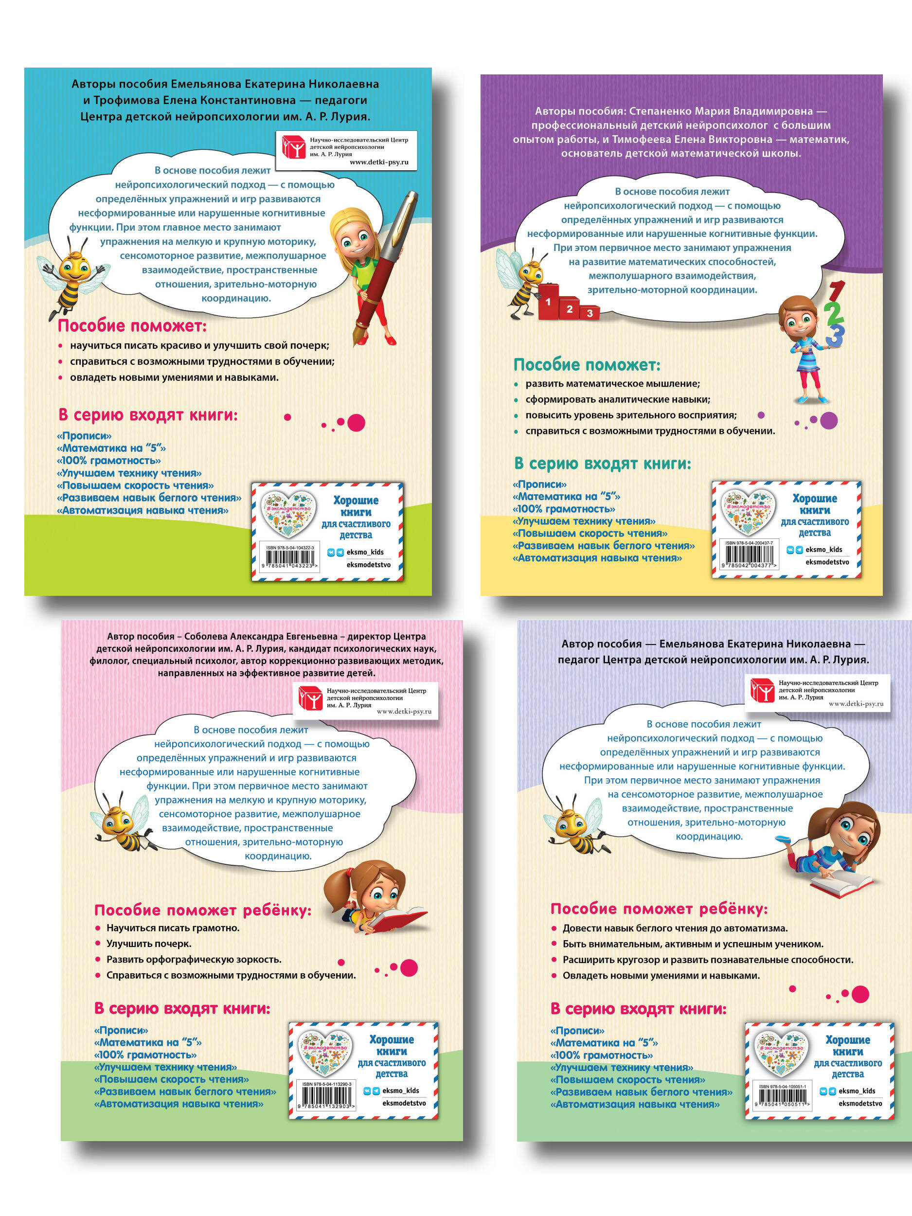 Аннотация: Комплект для детей 8-10 лет. Прописи. Повышение скорости чтения. Нейротренажер по чистописанию. Математика на «5»