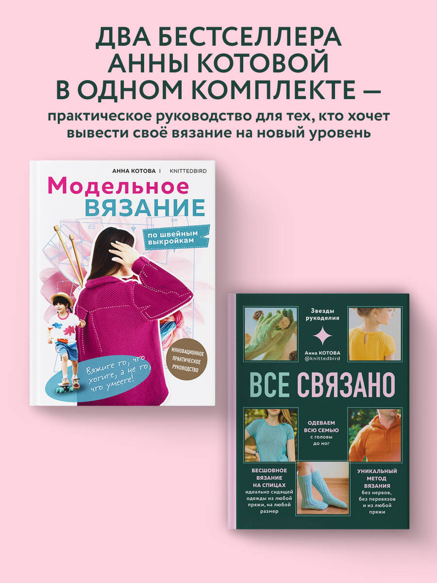Комплект из 2-х книг Анны Котовой: ВСЕ СВЯЗАНО. Бесшовное вязание на спицах идеально сидящей одежды из любой пряжи, на любой размер. Одеваем всю семью с головы до ног. Уникальный метод вязания без нервов, без перевязов и из любой пряжи и МОДЕЛЬНОЕ ВЯЗАНИЕ по швейным выкройкам. Инновационное практическое руководство| Издательство | ООО "Издательство "Эксмо" |