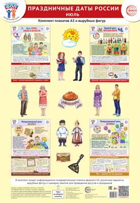 Комплект. ФОП ДО. Праздничные даты России. Июль 4 плаката А3, 12 вырубных фигур, методические рекомендации