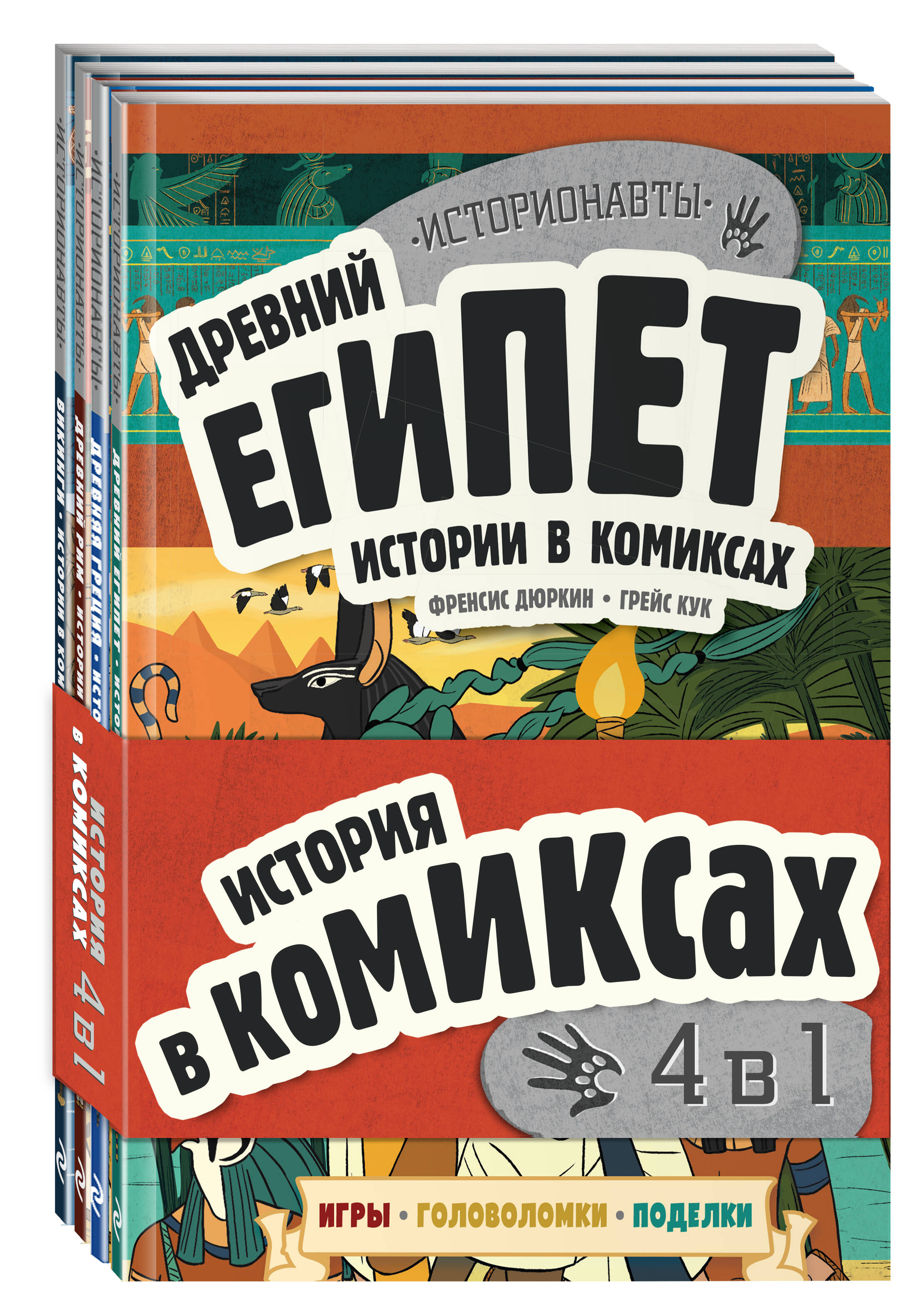 Отправляйся в большое путешествие в прошлое вместе с историонавтами и этим замечательным комплектом из 4-х книг - «Древний Египет», «Древняя Греция», «Древний Рим» и «Викинги». С юными исследователями ты попадёшь в Древний Рим: примеришь доспехи легионеров, сделаешь подношение богам, прокатишься на колеснице и встретишься с бесстрашными гладиаторами. В Древней Греции тебе расскажут всё об олимпийских играх и демократии. В Древнем Египте тебя ждут тайны богатых гробниц, расшифровка иероглифов и изучение искусства мумификации. А оказавшись в эпохе викингов, ты будешь расшифровывать руны, строить красивые корабли и узнаешь всё об их набегах. «Историонавты» - это увлекательнейшая смесь комиксов, фактов и игр!| Издательство | ООО "Издательство "Эксмо" |