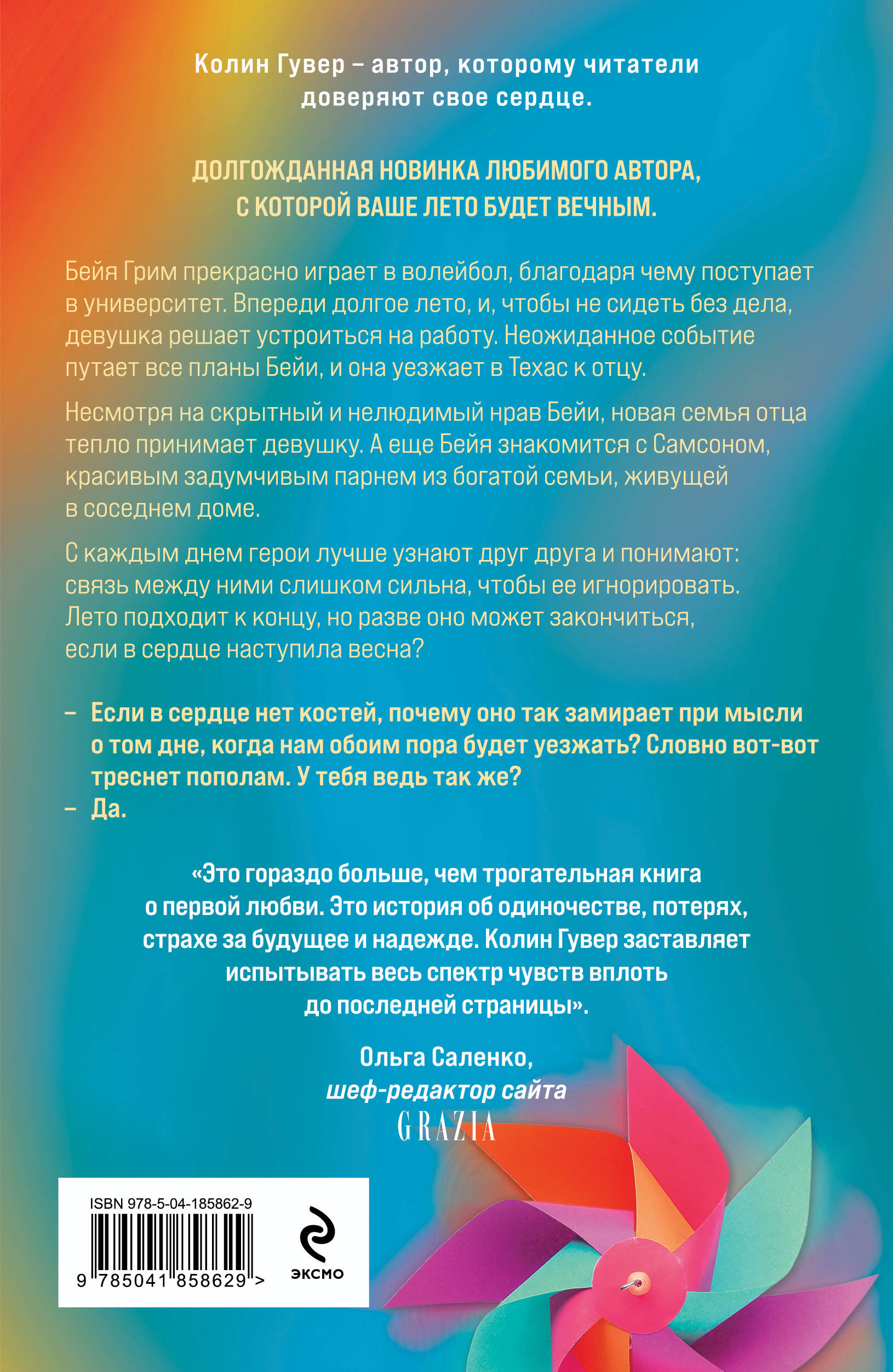 КОЛИН ГУВЕР - автор, которому читатели доверяют свое сердце, литературный феномен нашего времени, троекратная обладательница премии Goodreads Choice Award в номинации «любовный роман». Ее произведения переведены на десятки языков. Она - мировой тренд. Продажи книг Колин Гувер превысили продажи Стивена Кинга и Джорджа Мартина. Более 5 000 000 000 просмотров в TikTok. В комплект входят романы «Кости сердца» и «Все закончится на нас». Это истории о том, какой разной бывает любовь. Первая - неповторимая и незабываемая. Вторая - драматичная и формирующая. И обе - о любви к себе. О том, с кого на самом деле все начинается. «КОСТИ СЕРДЦА» - книга, с которой ваше лето будет вечным. Бейя Грим прекрасно играет в волейбол, благодаря чему поступает в университет. Впереди долгое лето, и, чтобы не сидеть без дела, девушка решает устроиться на работу. Неожиданное событие путает все планы Бейи, и она уезжает в Техас к отцу. Несмотря на скрытный и нелюдимый нрав Бейи, новая семья отца тепло принимает девушку. А еще Бейя знакомится с Самсоном, красивым задумчивым парнем из богатой семьи, живущей в соседнем доме. С каждым днем герои лучше узнают друг друга и понимают: связь между ними слишком сильна, чтобы ее игнорировать. Лето подходит к концу, но разве оно может закончиться, если в сердце наступила весна? Вертушка - главный символ этой книги. Бейя, главная героиня, выбрала изображение урагана в качестве памятной татуировки, а Самсон выбрал вертушку. На обеих татуировках героев запечатлено вращение. У нее - разноцветный вихрь. У него - изящный и яркий образ. Таким было их лето. Таким оно и останется с ними. Навсегда. «ВСЕ ЗАКОНЧИТСЯ НА НАС» - драматическая история взаимоотношений влюбленной пары с неожиданным финалом. Это история не о любви. Это история о том, как от нее спастись. Одноименная экранизация Sony Pictures с Блейк Лайвли в главной роли. Лили всегда упорно трудилась ради той жизни, о которой мечтала. Она проделала долгий путь: уехала из маленького города, окончила колледж и открыла свой бизнес в Бостоне. А потом Лили влюбилась в Райла. Он напорист, упрям и питает абсолютную слабость к Лили, а она не может выбросить его из головы. Райл против серьезных отношений, и очень скоро Лили начинает понимать, что не все так просто. Все больше Лили одолевают сомнения. Все меняется, когда в ее жизни снова появляется первая любовь - Атлас. Лилия - главный символ этой книги. Что будет, если посмотреть на прекрасный цветок под другим углом? Обнажить его неприглядную сторону, прославляющую не только жизнь, но и смерть, не только начало, но и конец. Добавятся новые образы, новые смыслы, но он не перестанет быть прекрасным. Эти цветы Райл дарит Лили, чье имя только добавляет им значимости.