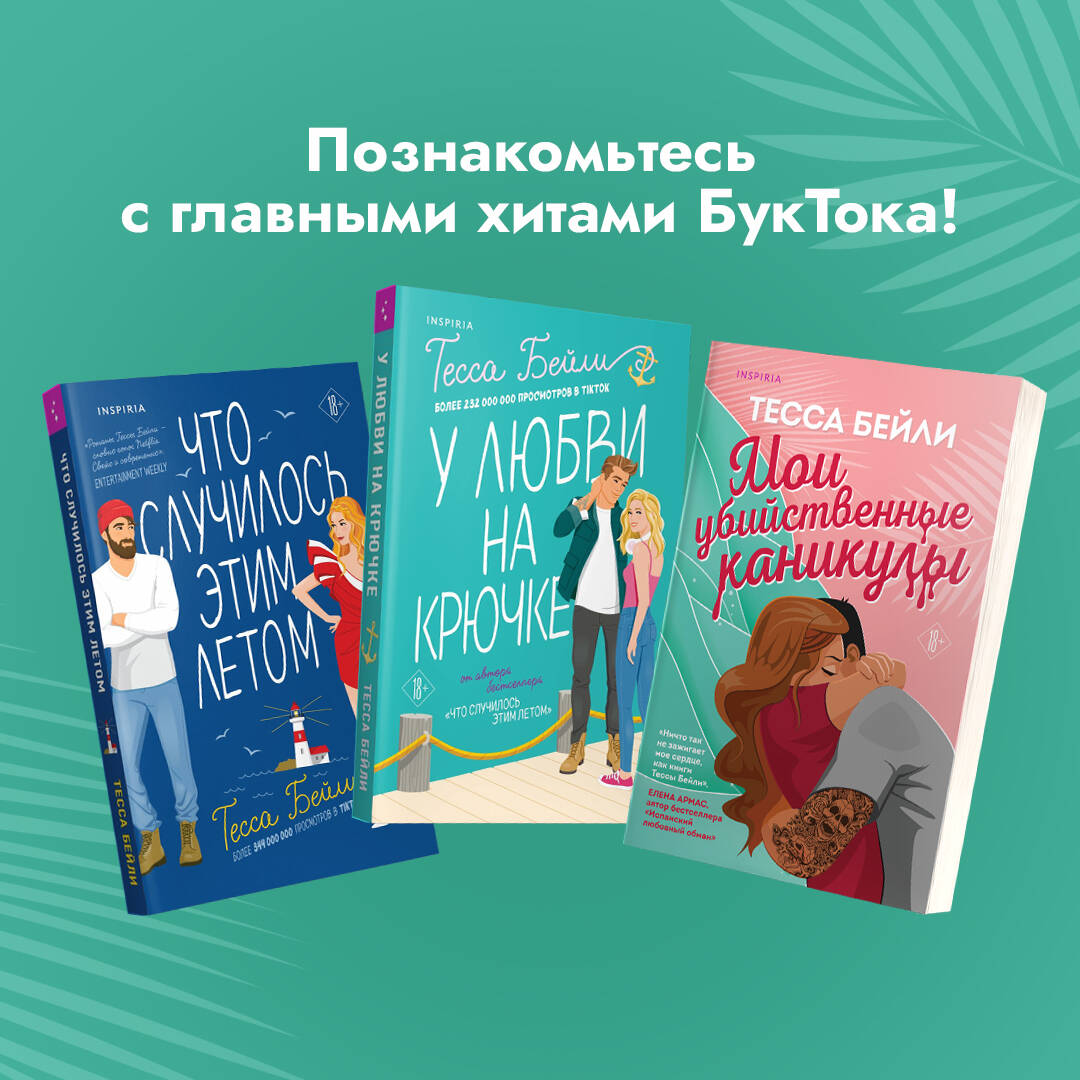 Комплект из двух TikTok-хитов. В комплект входят романы Тессы Бейли «Мои убийственные каникулы» и «Тайная поклонница». Эти истории любви покорили миллионы женских сердец по всему миру. Мои убийственные каникулы Тейлор и ее брат арендуют небольшой коттедж на солнечном полуострове Кейп-Код, чтобы провести там летние каникулы. Правда, их отдых прерывается, когда милый домик на берегу океана превращается в место преступления. Расследует дело Майлз - суровый парень, который отказывается принимать помощь Тейлор в расследовании. Она работает учительницей в начальной школе, а в свободное время увлекается тру-крайм подкастами, поэтому ей очень хочется помочь найти преступника. Позволит ли Майлз присоединиться Тейлор к расследованию? Ведь с каждым днем его влечет к этой девушке все сильнее. Тайная поклонница Пятнадцать лет назад Хэлли и Джулиан были близки к своему первому поцелую на одной из школьных вечеринок. Но он так и не состоялся… Теперь Хэлли Уэлч живет в городке Санта-Хелена и унаследовала маленький садоводческий бизнес от своей бабушки, а Джулиан Вос - знаменитый профессор и наследник винодельческой империи Восов. Джулиан возвращается в семейное поместье, чтобы провести там отпуск и встречает Хэлли. Девушка все еще влюблена в него, а вот он… абсолютно не помнит ее. Хэлли врывается в упорядоченную жизнь Джулиана словно ураган, и с первого же дня становится понятно, что они - самая неподходящая друг другу пара. Правда, профессор Вос не может совладать со своими чувствами к Хэлли. Пока на пороге его дома не появляется письмо от тайной поклонницы. Ведь строки из ее посланий теперь не выходят у него из головы.| Издательство | ООО "Издательство "Эксмо" |