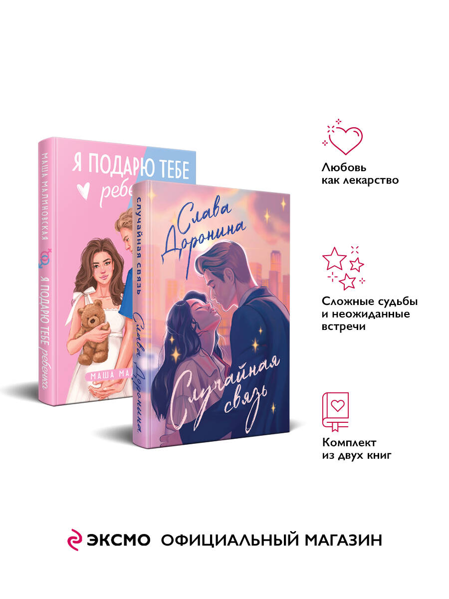 Комплект из 2-х книг: «Я подарю тебе ребенка» Маши Малиновской и «Случайная связь» Славы Дорониной. Тонкая и пронзительная история, написанная Машей Малиновской, рассказывает о преданной дружбе, беззаветной любви и, конечно, о счастье материнства. «Я подарю тебе ребенка» Самая большая мечта Вики Разумовской - стать мамой. Вот только врач поставил ей чудовищный диагноз, который девушка восприняла как приговор. Одна случайная встреча с бывшим одноклассником переворачивает жизнь Вики с ног на голову. Еще бы, ведь Захар Зернов лучший в городе врач-акушер, и только он сможет подарить ей ребенка… «Случайная связь» - это история о поиске себя, о том, как на обломках прошлого могут зародиться новые мечты. Эмоциональный коктейль из драмы, страсти и искренних, живых чувств, от которых невозможно оторваться. Жизнь Сони была расписана по минутам: любимый муж, стабильная работа, четкие планы на будущее. Однако одна случайная смена в частной скорой помощи рушит эту идиллию. Предательство близкого человека, одиночество и неожиданное знакомство с Павлом Измайловым, самоуверенным, харизматичным бизнесменом, переворачивают ее реальность с ног на голову. Павел груб, настойчив и циничен, но за этой маской скрывается нечто большее. Что именно? И можно ли доверять человеку, чьи намерения остаются загадкой?| Издательство | ООО "Издательство "Эксмо" |