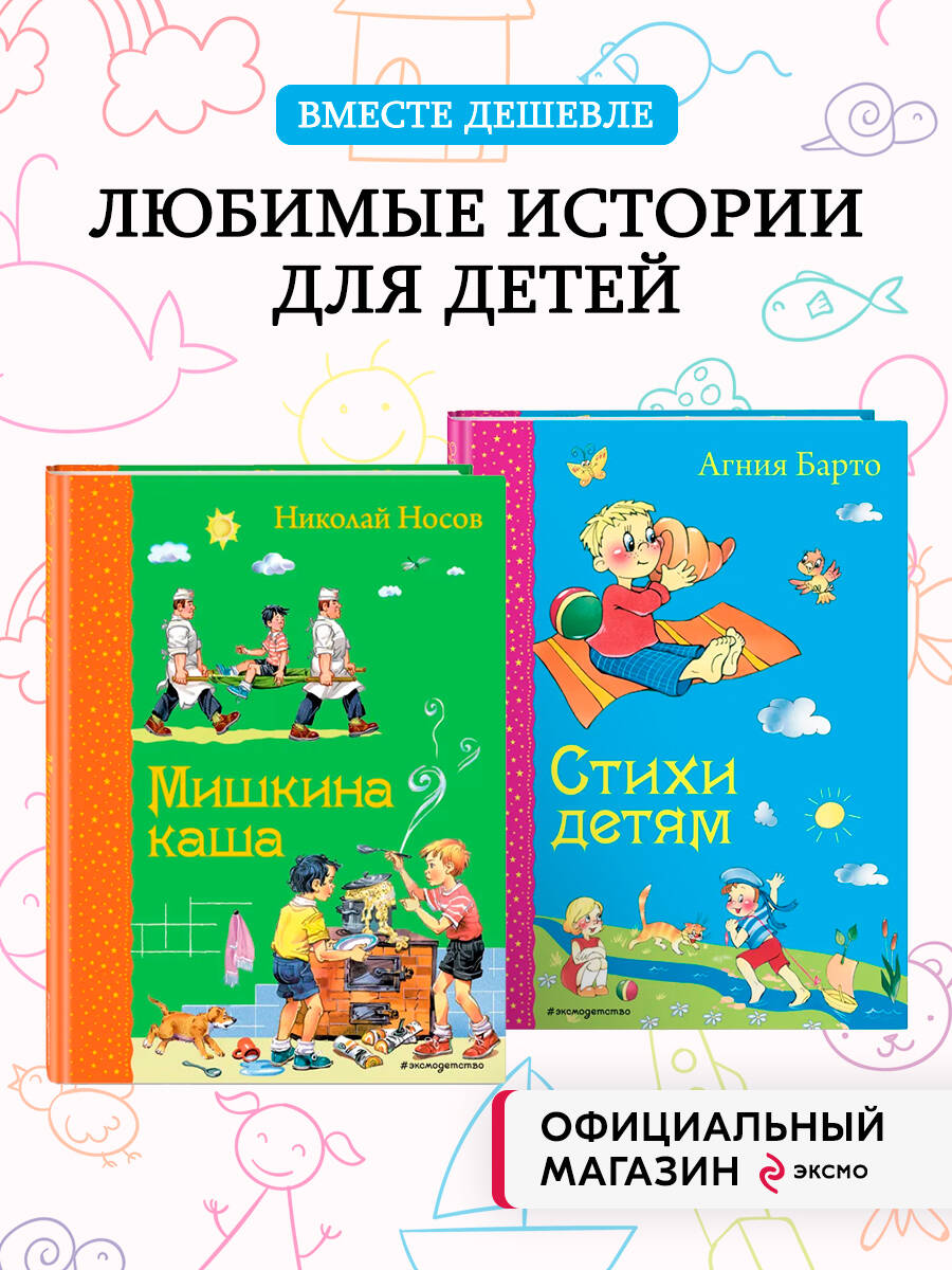 В комплект вошли 2 книги: «Мишкина каша» Николая Носова и «Стихи детям» Агнии Барто. Из сборника Николая Носова вы узнаете о весёлых приключениях двух друзей Коли и Миши и о незадачливом Феде Рыбкине. Истории сопровождаются красочными иллюстрациями Владимира Канивца. А стихи Агнии Барто с яркими художественными работами Владимира и Юлии Трубицыных погрузят в тёплую атмосферу детства и порадуют. Произведения включены в школьную программу по внеклассному чтению. Книги небольшого формата с фольгой и глянцевым лаком. Подойдут в качестве подарка и станут приятным приобретением для семейной библиотеки.| Издательство | ООО "Издательство "Эксмо" |