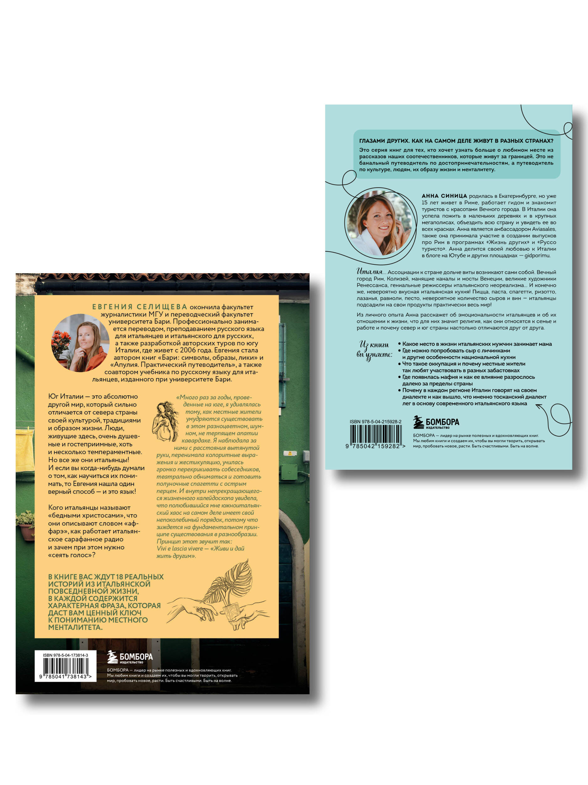 Комплект из 2-х книг про Италию Книга "О чем говорят итальянцы. Рассказы с юга Италии" - это увлекательные рассказы писателя и гида Евгении Селищевой, которая живет в Италии с 2006 года. Автор описывает обаятельный колорит итальянского юга и раскрывает менталитет местных жителей через язык, жесты, взаимоотношения друг с другом, традиционную еду и любимый вид спорта (конечно же, футбол!). Мосты и каналы Венеции, Колизей, великие художники Ренессанса, гениальные режиссеры итальянского неореализма, пицца и паста, колыбель моды и искусства - все это про Италию. Каждый год туда стремятся попасть люди со всего света, чтобы своими глазами увидеть великие шедевры и лично прочувствовать атмосферу итальянской дольче виты! Но так ли сладко живут итальянцы на самом деле? Проводником по итальянской жизни станет гид по Риму и блогер Анна Синица, которая более 15 лет живет в Вечном городе. Она успела объездить всю страну и увидеть Италию во всех красках. Анна расскажет об особенностях национальной кухни, странных и не очень законах, о том, как итальянцы проводят свободное время, что для них значит религия и многое другое!| Издательство | ООО "Издательство "Эксмо" |