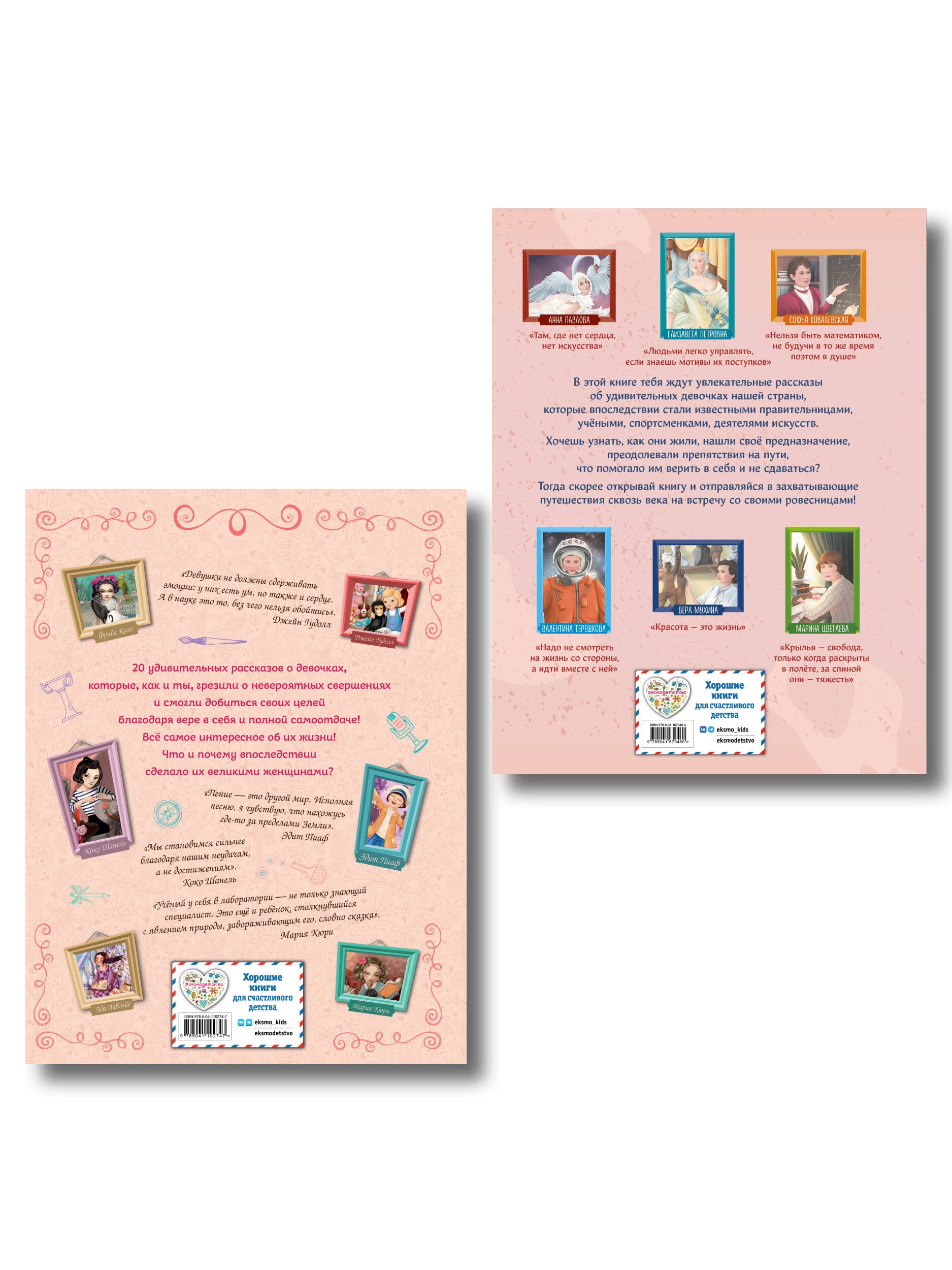 Комплект из 2-х книг. Книги о девочках, изменивших мир. «Девочки, прославившие Россию» Вы хотите познакомить вашего ребенка с известными людьми России - княгиней Ольгой и Екатериной Дашковой, Галиной Вишневской и Мариной Цветаевой, Анной Павловой и Валентиной Терешковой? Узнать, во что играли будущие исторические личности? Чем увлекались в детстве? Как искали свою судьбу, искали себя на нелегких жизненных дорогах? Ведь они так же, как и все мы, одолевали за партой неподдающиеся науки, отстаивали собственное мнение в спорах; у них были свои детские огорчения и радости. И далеко не все получалось с первого раза... Тогда открывайте эту книгу! В каждом из 20 биографических рассказов, адаптированных для детей 7-10 лет, - невероятный образец силы воли и стойкости характера, мотивирующий девочек на собственные свершения. Их сопровождают красочные полосные иллюстрации и занимательные факты, чтобы знакомиться с выдающимися соотечественниками было наглядно и увлекательно. А еще это неповторимый подарок для всех, кто гордится историей и культурой своего Отечества! Книги серии получили заслуженно высокую оценку - в 2024 году они были номинированы на премию Российского общества «Знание» в категории «Лучшая просветительская книга». «20 необыкновенных девочек, изменивших мир» Эта книга расскажет о двадцати девочках, впоследствии ставших знаменитыми учеными, исследователями и деятелями искусств, чьи имена навсегда останутся в истории человечества. Какая женщина-палеонтолог еще в детстве первой в мире нашла скелет ихтиозавра? Кто из кинодив способствовал появлению Wi-Fi? Какая исследовательница стала обладательницей сразу двух Нобелевских премий? Энциклопедия ответит на все эти и многие другие вопросы о необыкновенных девочках, изменивших мир.| Издательство | ООО "Издательство "Эксмо" |