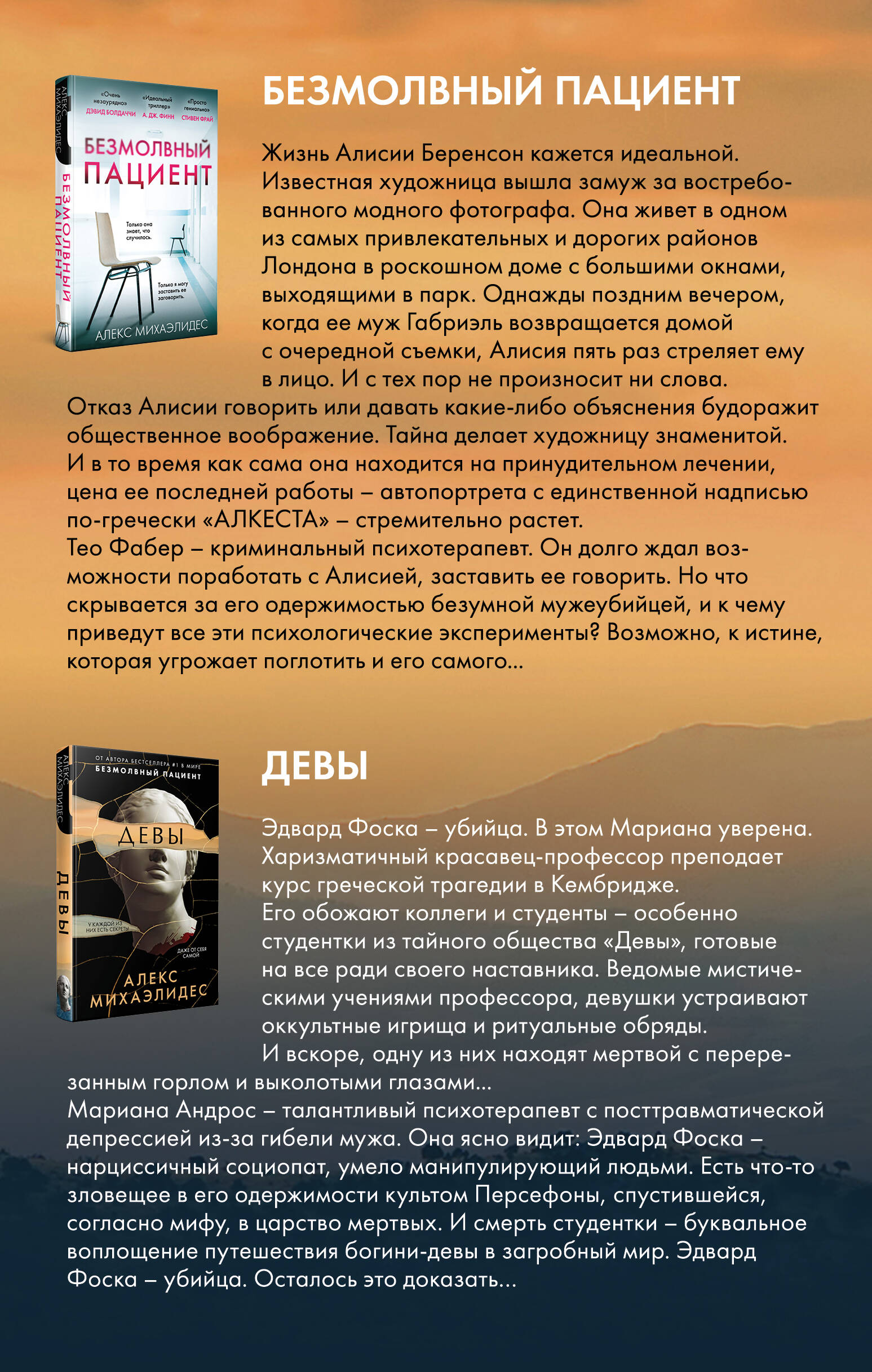Аннотация: Комплект из 2 книг. Психоанализ убийства (Безмолвный пациент. Девы)
