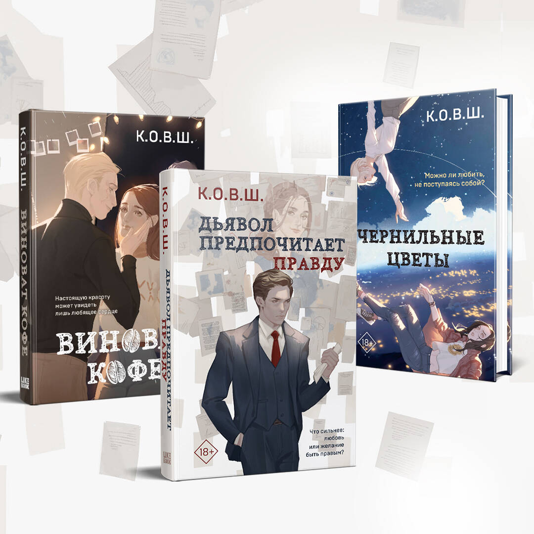 БЕСТСЕЛЛЕРЫ «ВИНОВАТ КОФЕ» И «ДЬЯВОЛ ПРЕДПОЧИТАЕТ ПРАВДУ» ОТ К.О.В.Ш. В ОДНОМ КОМПЛЕКТЕ! Жизненные ситуации, искрометный юмор, настоящая дружба и великая любовь в современной России! Он смотрел не на салют, а на Кристину, и медленно и глупо растягивал рот в дебильной улыбке. В животе вспорхнула бабочка, а потом еще одна, и еще одна, и еще. И их там был целый рой. Они трепетали под кожей, летали и кололи, как мелкие иголки с током. И это дурацкое свербящее чувство становилось все больше, все сильнее и отчетливее. Ему было так не по себе и одновременно так хорошо. «Виноват кофе» Илья ненавидит зеркала. Вид изуродованного шрамами лица вызывает у него бессильную ярость. Он с трудом выносит взгляды посторонних. После аварии, разделившей его жизнь на «до» и «после», Илья закрылся в себе и никому не верит. Но один случайно пролитый стаканчик кофе меняет все - в жизни Ильи появляется Кристина. Неуклюжая, до смешного принципиальная и добрая, она видит в нем то, что не замечают другие, разглядев под шрамами и напускным равнодушием его настоящего. Сможет ли Илья переступить через свои страхи и сделать шаг навстречу настоящей любви, которая не разделяет людей по красоте и статусу? «Дьявол предпочитает правду» Полина любит свою работу, крепкий кофе и Сашку из соседнего отдела. Но все меняется, когда в офисе появляется новый босс, Даниил, в костюме-тройке и с характером дьявола, который одним днем увольняет двадцать человек. Полина не знает, что он обнаружил несостыковки в финансовых отчетах и понял, что кто-то проворачивает махинации с бюджетом. Даниил сближается с ней только для того, чтобы выведать ее секреты, потому что он подозревает всех. Полина же изо всех сил пытается произвести на него хорошее впечатление. Чем обернётся для них обоих эта игра? К.О.В.Ш. - мастера сентиментальной прозы, уже давно радуют читателей своими книжными хитами: «Виноват кофе», «Дьявол предпочитает правду», «Хозяин моей души». В их творчестве каждый найдёт то, что ищет: любовь, приключения, искромётный юмор и комфорт дружеских объятий. Идеальное чтение для любителей Эллин Ти, Аси Лавринович и Анны Джейн. Комфортная для чтения бумага, цветные форзацы, обложки от известного молодёжного художника XINSHI.| Издательство | ООО "Издательство "Эксмо" |