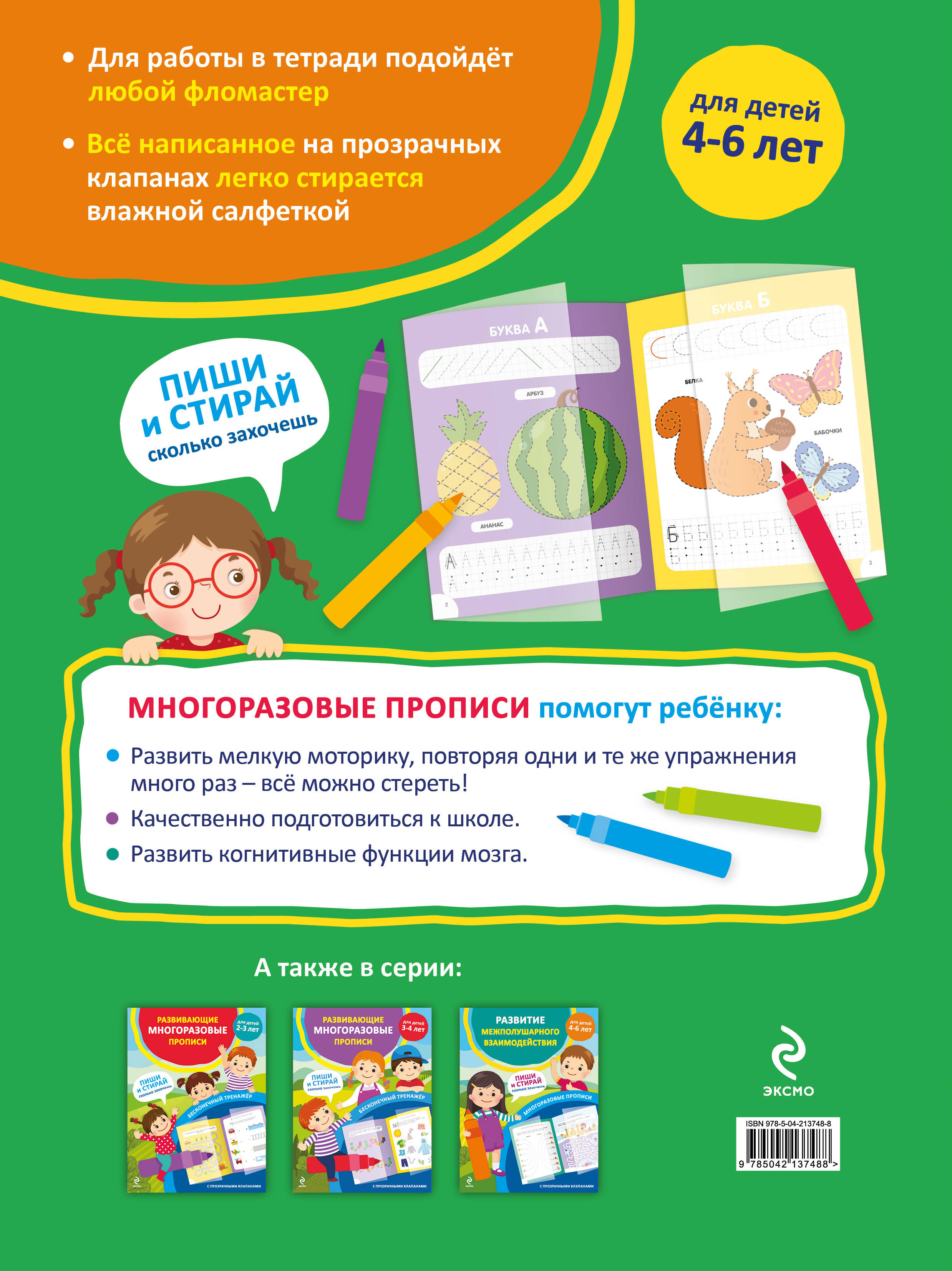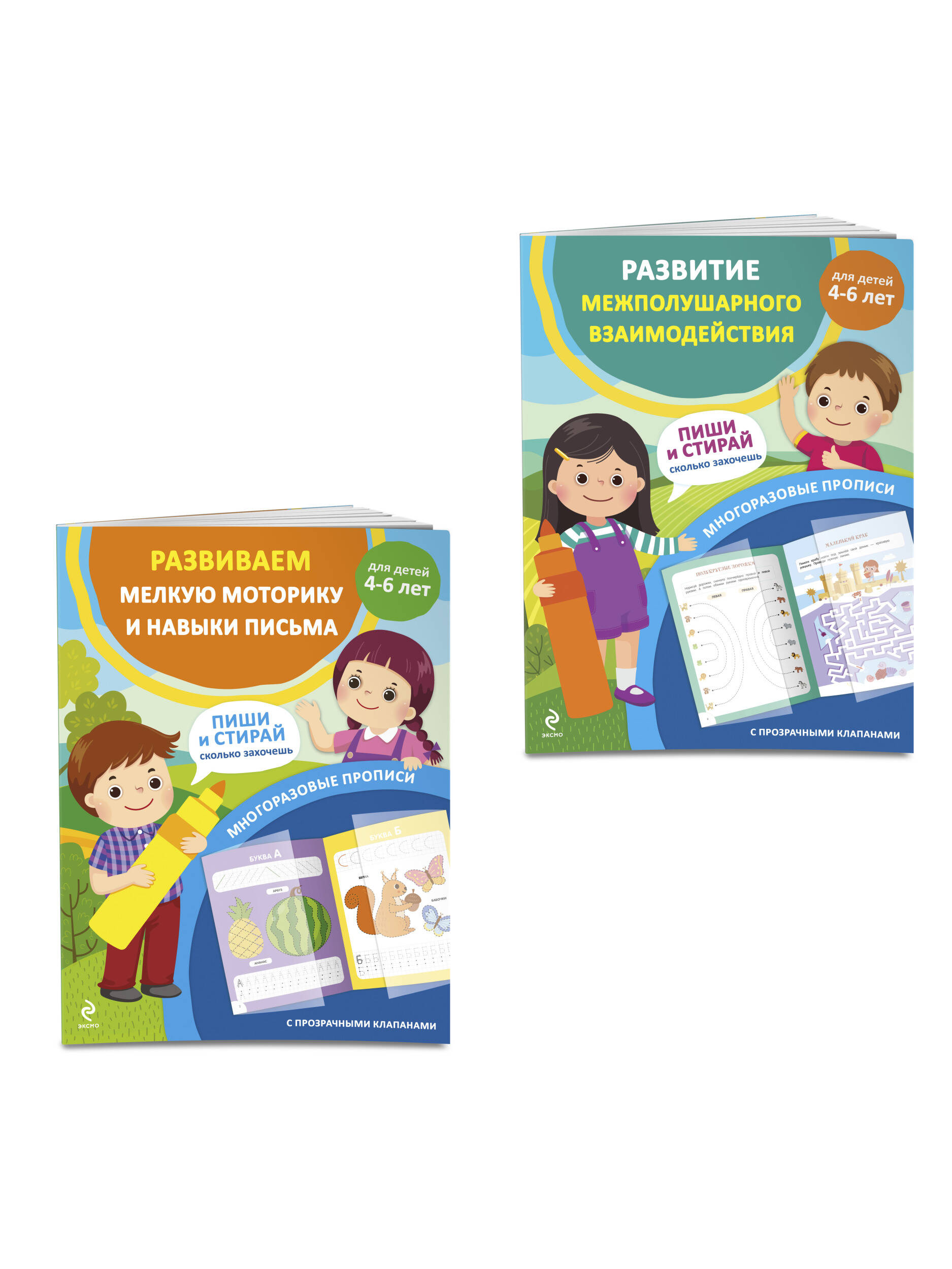 Комплект из двух необычных многоразовых детских книг-прописей от издательства «Эксмо» - не просто развивашки, а уникальные тренажёры, которые ребёнок будет обожать. В наборе - книга для развития мелкой моторики и обучения печатным буквам и книга для тренировки межполушарного взаимодействия, гармонично стимулирующая правое и левое полушария мозга. Каждая развивающая тетрадь снабжена прочными прозрачными клапанами: малыш пишет по ним фломастером или маркером, стирает написанное влажной салфеткой и повторяет задания снова и снова, без стресса, без страха ошибки. Детская игра, которая учит; учебник, который развлекает! Игровые техники - рисование обеими руками, зеркальные рисунки, задания на координацию и логику - укрепляют внимание, память, творческое и критическое мышление. Многообразие заданий и возможность повторять их бесконечно делают обучение увлекательным. Рисуй, стирай и повторяй сколько захочешь! Эти книги полезны для мальчиков и девочек 4, 5, 6 лет, идеально подходят как развивающий подарок на день рождения, Новый год или просто без повода. С ними подготовка к школе эффективна и практична. Каждая книга подарит уверенность в своих силах и ненавязчиво замотивирует на учёбу. Хорошее развитие навыков письма, счёта, мышления и самостоятельности - это гарантированный шаг к успешной учёбе в первом классе. Проверено родителями, одобрено педагогами.| Издательство | ООО "Издательство "Эксмо" |