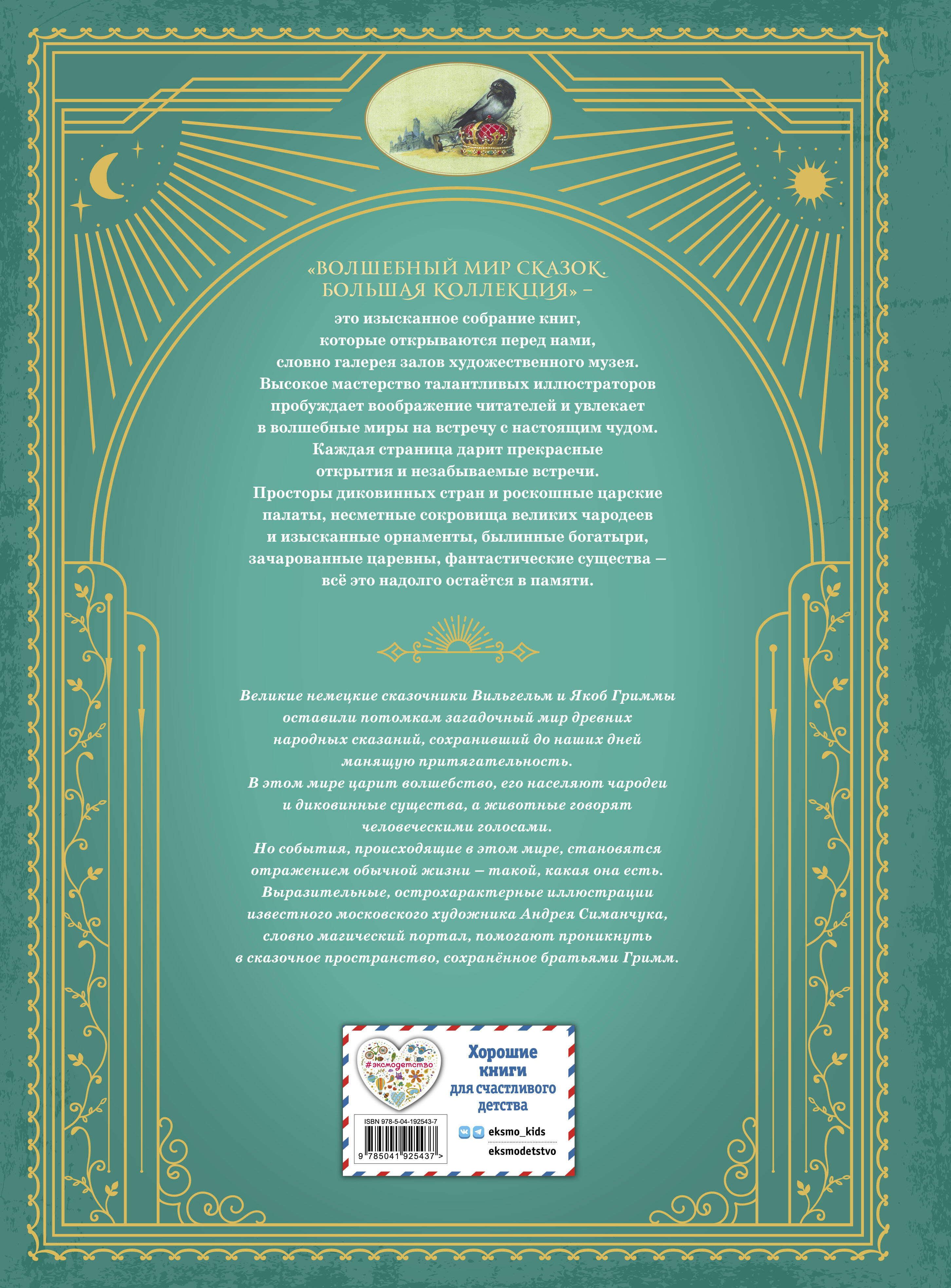 СРАЗУ ДВЕ ПРЕКРАСНЫЕ КНИГИ В ВЕЛИКОЛЕПНОМ ОФОРМЛЕНИИ! Издания большого формата (24х32,5 см). Твёрдый переплёт с золотым тиснением и частичным лаком. Цветные форзацы. Плотная бумага. Чёткий, удобный для чтения шрифт. Красочные иллюстрации. Роскошный комплект из двух книг - это изысканный и стильный подарок к любому празднику: дню рождения, Новому году и Рождеству, Дню знаний, выпускному вечеру, юбилею. Эти прекрасные издания станут поистине ценным даром и украсят любую домашнюю библиотеку. Работы лучших современных художников подарят незабываемые впечатления от встречи со сказкой! Ведь сказки с незапамятных времён привлекали людей своей необычностью, передавали через поколения вековую мудрость, понимание добра и зла, неписаные правила жизни, формировали уникальный культурный код наций и народов. В комплект вошли знаменитая сказка английского математика, писателя и поэта Льюиса Кэрролла «Алиса в Стране чудес» с красочными, реалистичными иллюстрациями Анны Власовой и сборник прекрасных сказок из коллекции великих немецких филологов Якоба и Вильгельма Гримм с иллюстрациями Андрея Симанчука, великолепно отразившего в своих работах дух немецкого романтизма.| Издательство | ООО "Издательство "Эксмо" |