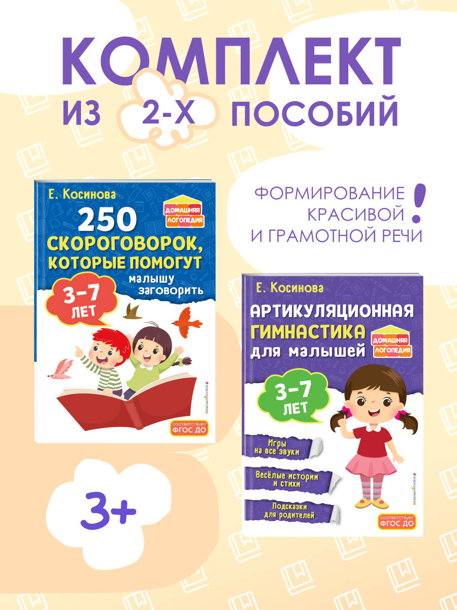 Аннотация: Комплект из 2х книг для развития речи. 250 скороговорок и артикуляционная гимнастика для детей 3-7 лет