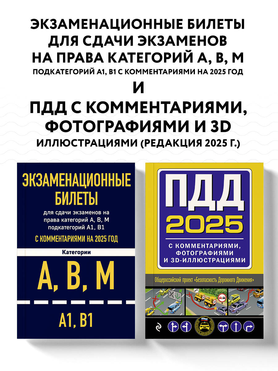 Аннотация: Комплект из 2х книг: Экзаменационные билеты АВМ + ПДД с комментариями 2025 (ИК)
