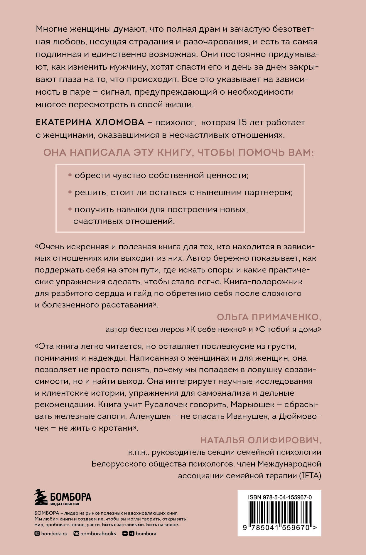 Комплект состоит из 2-х книг: «С тобой я дома. Книга о том, как любить друг друга, оставаясь верными себе» и «Я не могу без тебя. Как выбирать подходящих партнеров и не терять себя в отношениях». «С тобой я дома. Книга о том, как любить друг друга, оставаясь верными себе» «С тобой я дома», - говорим мы кому-то особенному. Тому, с кем не приходится прятаться, заметать следы, притворяться и защищаться, - а можно просто быть собой. И строить бережные отношения, полные доверия, честности и заботы. В своей новой книге Ольга Примаченко, автор бестселлера «К себе нежно», говорит о том, как любить, оставаясь верными себе, - согревать друг друга теплом, не сгорая дотла. Эта книга обнимет одиноких, утешит расставшихся и поможет разобраться тем, кто запутался в своих чувствах. А всем, кто влюблен и счастлив, еще раз напомнит, как это важно - вместе создавать дом, о котором всегда мечтали. «Я не могу без тебя. Как выбирать подходящих партнеров и не терять себя в отношениях» Многие женщины думают, что полная драм и зачастую безответная любовь, несущая страдания и разочарования, и есть та самая подлинная и единственно возможная. Они постоянно придумывают, как изменить мужчину, хотят спасти его и день за днем закрывают глаза на то, что происходит. Все это указывает на зависимость в паре - сигнал, предупреждающий о необходимости многое пересмотреть в своей жизни. Екатерина Хломова - психолог, которая 15 лет работает с женщинами, оказавшимися в несчастливых отношениях. Она написала эту книгу, чтобы помочь вам: - обрести чувство собственной ценности; - решить, стоит ли остаться с нынешним партнером; - получить навыки для построения новых счастливых отношений.| Издательство | ООО "Издательство "Эксмо" |